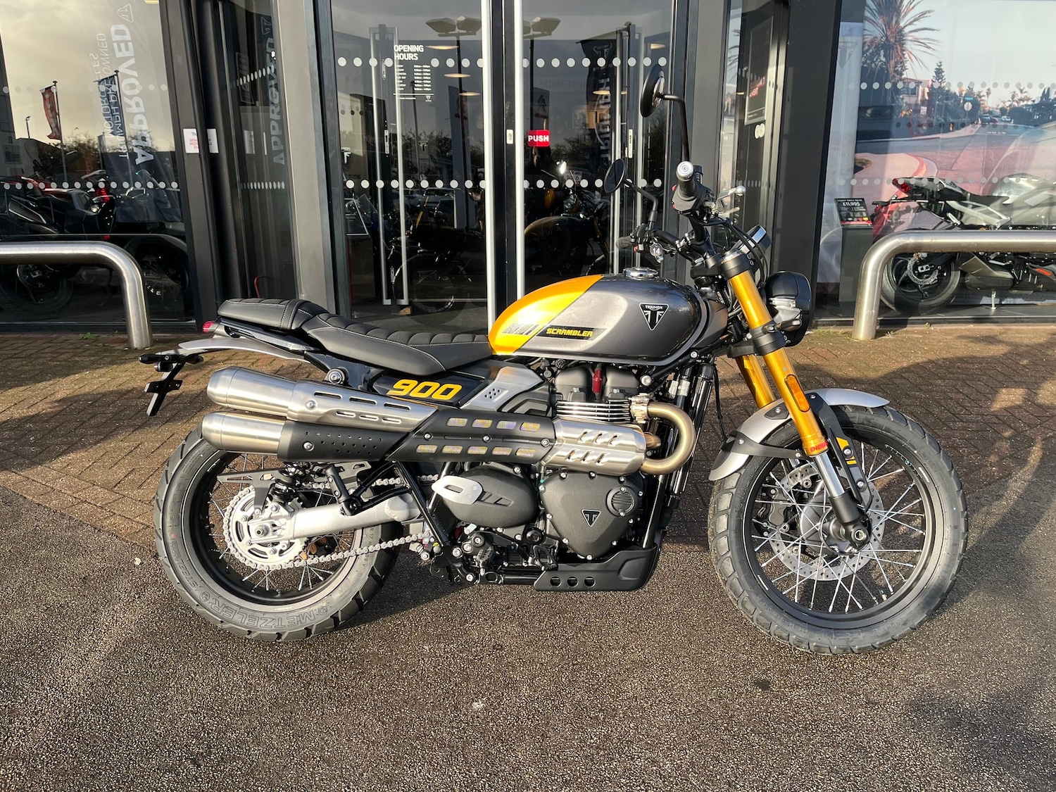 ChesterfieldScrambler 900 Brand New Model Cosmic Yellow Stunning Colour 24 Months Warranty and Triumph AssistIconic Bonneville DNA redesigned to produce a modern take on a British icon, oozing with rugged offroad style whilst keeping that distinctive classic silhouette that is instantly recognisable. The NEW Scrambler 900 utilises the iconic 900 British twin that delivers a captivating experience with its deepthumping exhaust note and rich power delivery. The wide range of genuine Triumph accessories available can further enhance the experience with added style and function.This bike is brand new and available for immediate registration, and comes with 24 months Warranty, 24 months RAC Triumph Assist, and 12 months Road Tax. Finished in Cosmic Yellow, this bike is a real standout and very unique and a perfect blank canvas for customisation.Further photos, and personalised videos are available on request. Ring now and don't miss This stunning bike!PLEASE CLICK ON OUR PROFILE TO VIEW ALL OF OUR BIKES ON AUTOTRADER.