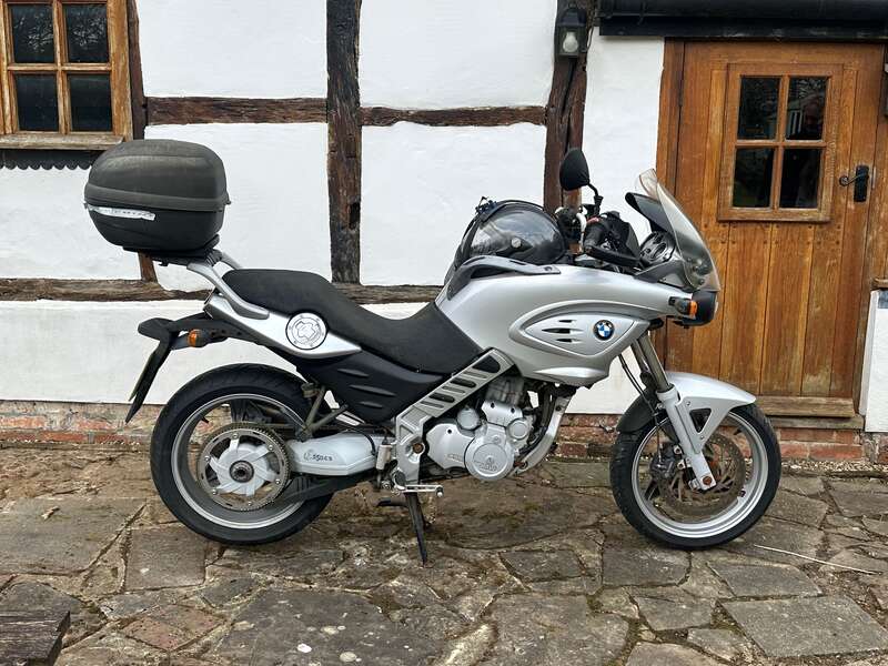 AshorneThis lot will be auctioned via Iconic Auctioneers, The Iconic Motorcycle Sale at Shuttleworth 2026 on Sunday the 19th of April, Shuttleworth, Old Warden Park, Beds, SG18 9EP . , A 2002 BMW F650 CS showing 29,300 miles from new at the time of cataloguing, representing a wellregarded and userfriendly middleweight motorcycle,Powered by BMWs proven singlecylinder engine, offering economical running and straightforward maintenance,Last used in 2022 and therefore will require recommissioning prior to returning to regular road use,Notably complete with its distinctive intank storage compartment, supplied with the original spare helmet, a unique and practical feature of the model,Also fitted with a rear top box, enhancing its usability for commuting or light touring duties,An accessible and versatile modern classic, ideal for a range of uses once recommissioned,Offered with a V5C and without reserve,