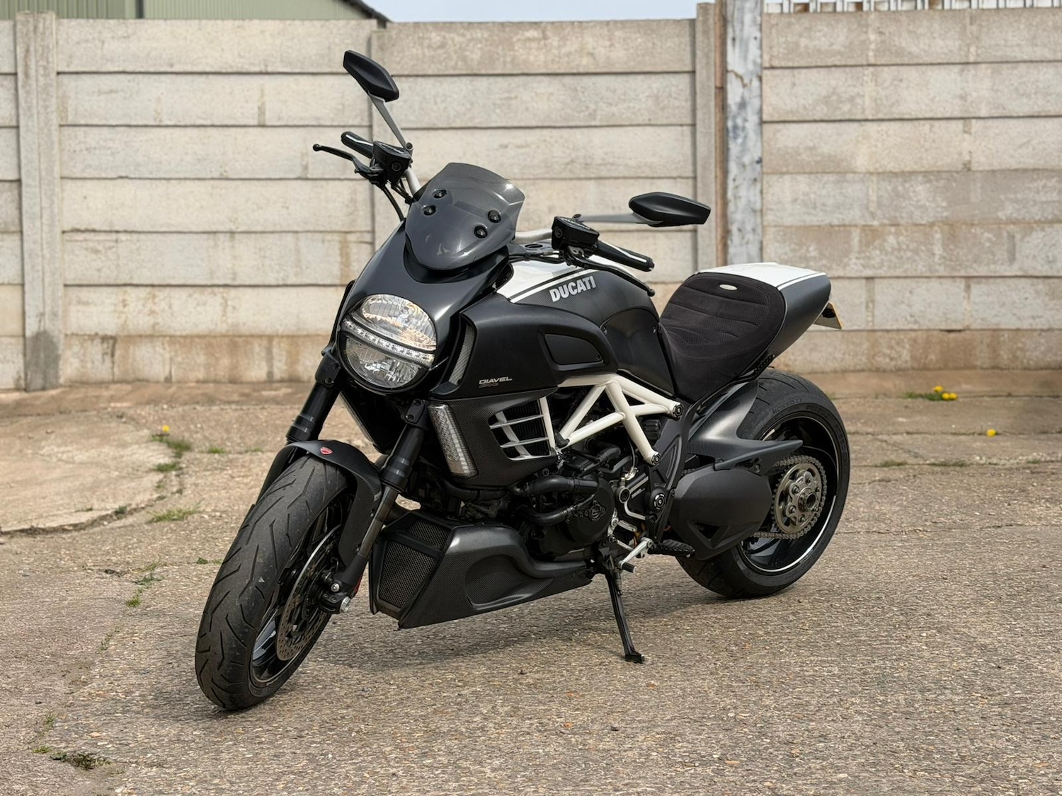LeicesterDucati Diavel AMG Carbon Special Edition finished in AMG inspired livery, covered just 9281 miles. This is an ultra rare and highly sought after model created through the collaboration between Ducati and Mercedes AMG, based on the Diavel Carbon but enhanced with exclusive AMG styling and performance features. Powered by a high performance Vtwin engine with Ducatis signature desmodromic system, delivering exceptional power and a unique riding experience. This special edition includes AMG five spoke alloy wheels, AMG sports exhaust with engraved end caps, AMG ECU, carbon fibre radiator covers with aluminium detailing, full carbon bodywork, and the iconic AMG ribbed seat. The frame is finished in AMG white with AMG branding throughout including laser engraved air ducts and badging. Each bike is hand finished with desmodromic cam timing set individually and features a numbered plaque, this example being number 664 making it highly collectible. Additional extras include Ducati Performance carbon hugger, heat shield, chain guard, and Ducati performance folding levers, all genuine parts maintaining originality, fly screen, and both the standard exhaust and fitted AMG system. Recently in January 2026 the bike has been to Ducati for a full service including belts, ensuring it is ready to ride. A truly unique investment piece with strong future value due to limited production and its rare AMG collaboration. Comes with warranty for added peace of mind.