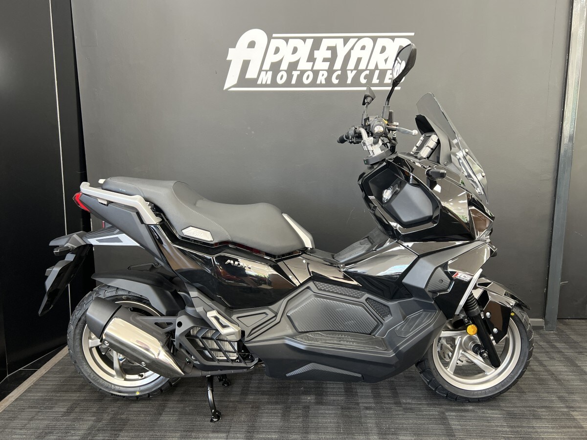 AdlingtonNow available at Appleyard motorcycles. Buy OnLine or over the Phone, LowRate Finance Available, Local delivery from your nearest SYM Motorcycle & Scooter official dealer. Message us or Call for more details. 07535 606 311Inspired by a sense of adventure, the SYM ADX 125 scooter boasts a unique and distinctive personality that sets it apart from other vehicles. Its design is a perfect blend of power, speed, and style elements, while also combining versatility with sophisticated beauty. With features like a monoshock absorber, special tires, and a comfortable riding position, the ADX can effortlessly handle rough and smooth terrains with equal ease.The ADX is not just a commuter scooter; it is a true masterpiece of crossover engineering that transforms every ride into an enjoyable and exciting adventure. Whether you're seeking a thrilling ride or just some simple fun in your daily life, the ADX is the perfect partner that you've been dreaming of.To enhance both style and safety, the ADX is equipped with full LED lighting, including LED headlights, position lights, tail lights, and turn indicators. The LED lighting not only makes the ADX visually stunning but also greatly improves its safety on the road.The allnew 5'' TFT instrument features an autodimmer that ensures great visibility in all lighting conditions. Additionally, it has two modes Day and Night that can be switched automatically. The clear instrument information provides optimal support for riders on all their adventures.The keyless system 2.0 is more userfriendly and easier to operate. It also features an emergency ignition mode that allows you to start the engine even when the key fob battery is low.The ADX boasts a large 15L fuel tank, which reduces the frequency of visits to the gas station. This fuel tank capacity is even larger than most maxi scooters, allowing riders to focus on enjoying their ride without worrying about fuel.The ADX also features a front compartment that provides convenient storage space for your phone, wallet, or other gadgets, making it the perfect companion for both short and long trips.Additionally, the ADX scooter features a front compartment that allows riders to put their phones, wallets, or gadgets inside. The scooter's dimensions are 1980 x 780 x 1225 mm in length, width, and height, respectively, with a wheelbase of 1390mm. It has a telescope fork front suspension and a singlesided monoshock rear suspension, both made of aluminium rims.