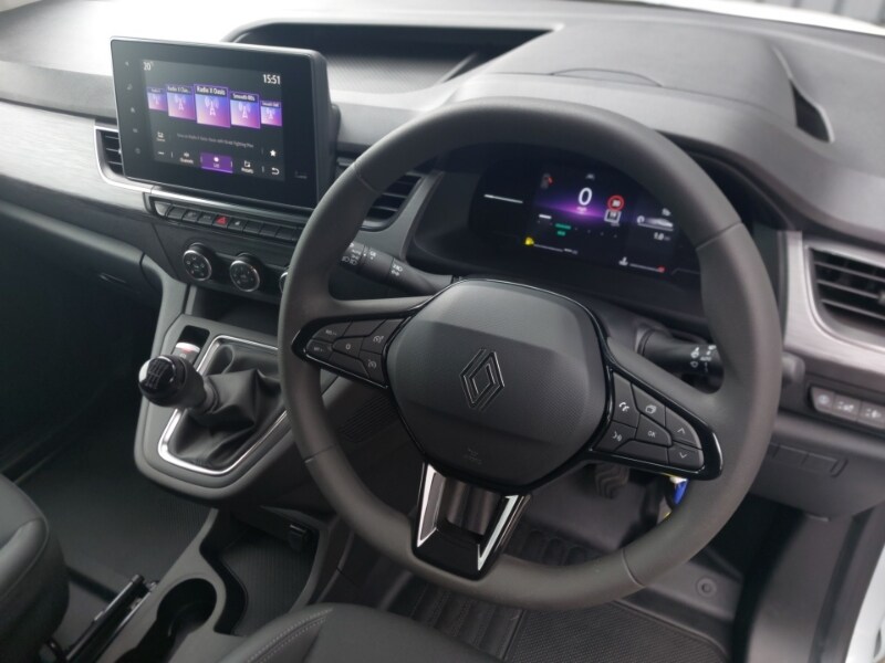 Easy link display with 8" touchscreen, DAB radio, bluetooth, USB ports and compatible with Apple carplay + Android auto, 4.2" TFT colour driver information display, Side loading door-left unglazed, Side loading door-right unglazed, Airbag - Front lateral, curtain and front passenger airbag with deactivation, Manual air conditioning, Cruise control with speed limiter, Rear parking sensor, Active emergency braking system, 180 degree unglazed asymmetric rear doors, Automatic headlights and rain sensitive front wipers, Full halogen headlights and daytime running lights, Wide view mirror, 10 anchorage points in load area, Load area LED lighting, Alarm - Thatcham T1 volumetric alarm, Deadlocking, Electric parking brake, ESC + Hill start assist, Tyre repair kit, Price Plus VAT