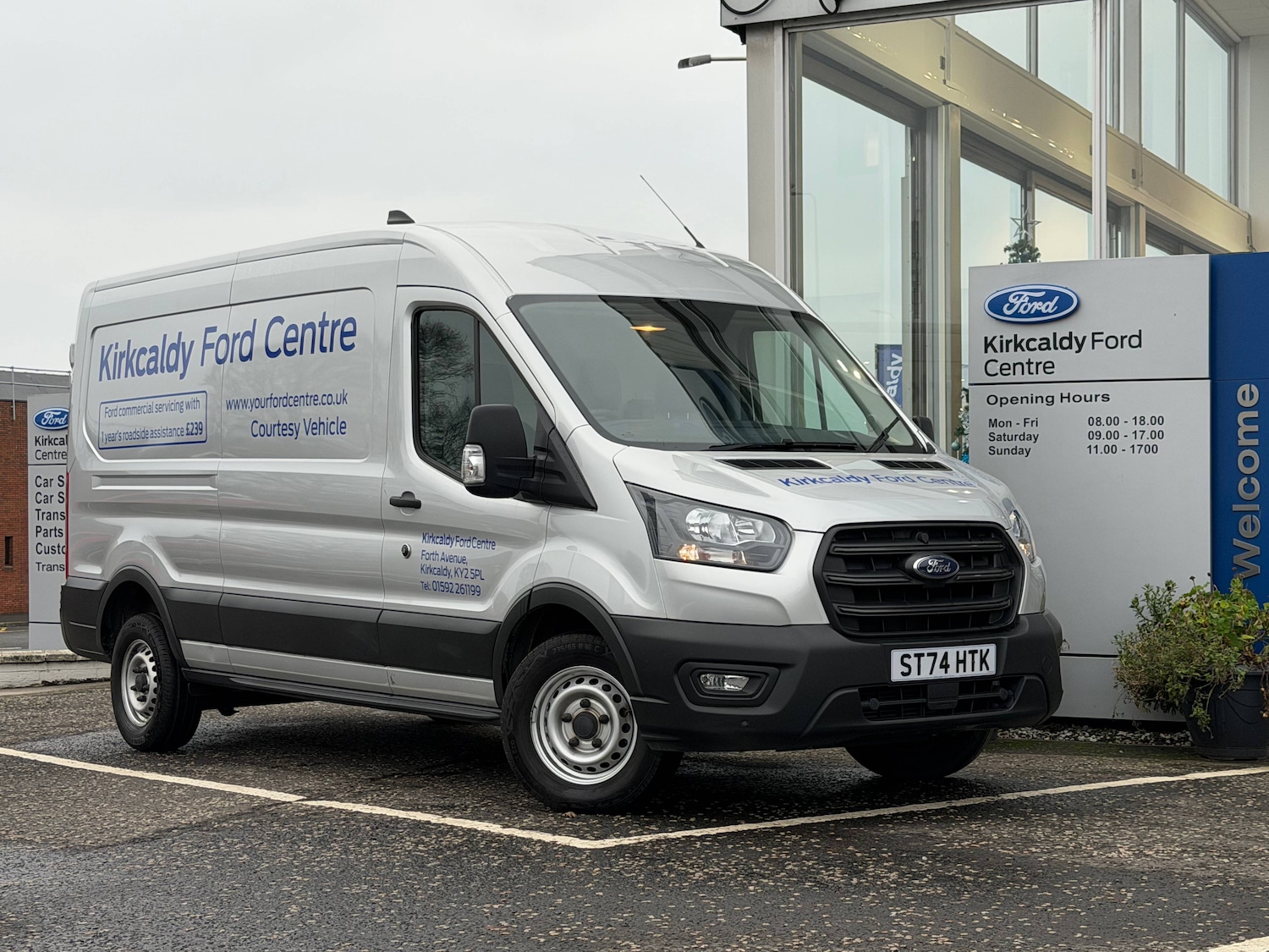 Kirkcaldy0 Previous Owners, Seatbelt reminder on front seats and fixed rear seats, Curvature Control, Easy fuel capless refuelling system, Emergency brake warning, PAS, Selectable drive mode, Trip computer, Vehicle maintenance monitor, Warning lights, 180 degree opening rear doors, Black dual manual signal mirrors, Daytime running lights, High mounted stop lamp, Kerbside side load doors, Medium roof line, Power windows, Rear bumper with integral step, Solid paint, Wide bodyside mouldings, Driver's armrest, Dual passenger seat tray and table, Easy clean load floor, Full steel bulkhead, Glovebox with A4 file storage, Less easy clean load floor, Overhead console, Radio with remote stalks, Reach and rake adjustable steering column, Storage box under dual passenger seat, Seat pack 4 - Transit, Remote central dead - locking, 2 x 12V power outlets, ABS + ESP + Hill start assist, Electronic dynamic cornering control, Extra heavy duty alternator, Mechanical parking brake, Side wind mitigation, Standard duty battery (single 80Ah H7 AGM battery), 4.2 inch Monochrome TFT non touch screen, DAB/AM/FM radio with 2 x USB, bluetooth, emergency assistance, Audio controls mounted on steering wheel, 16 inch steel wheels, Single rear wheels, Tyre repair kit, Price Plus VAT