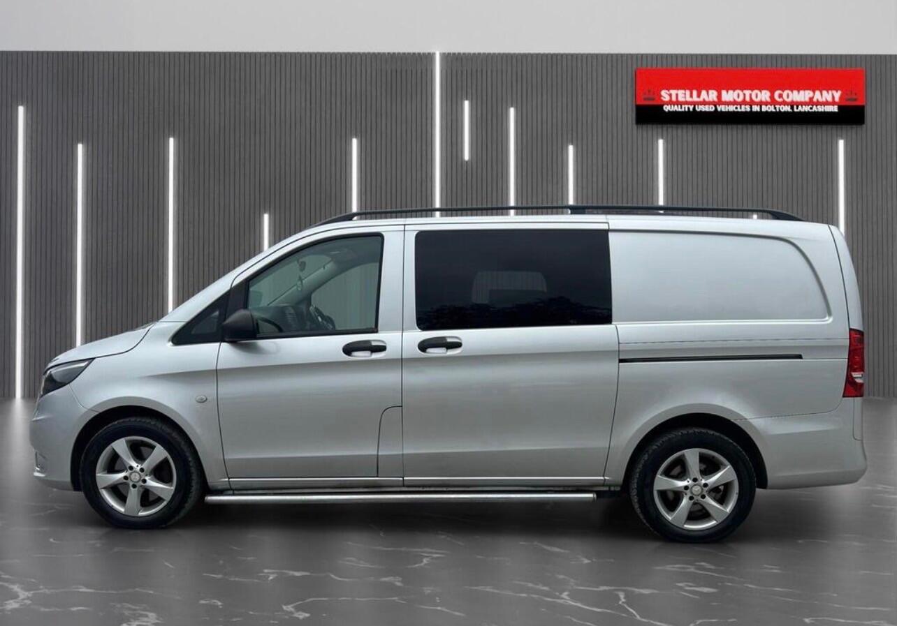 Very clean example of a factory crew cab Vito with 5 seats, MOT May 2026, top spec sport model with all the extras such as air con, parking sensors, roof rails , alloy wheels, chrome side steps, front fog lights, parking sensors, air con, paddle shift, tinted rear windows etcstarts and drives brilliantEURO 6 and ULEZ compliantNO VATNO VATNO VAT