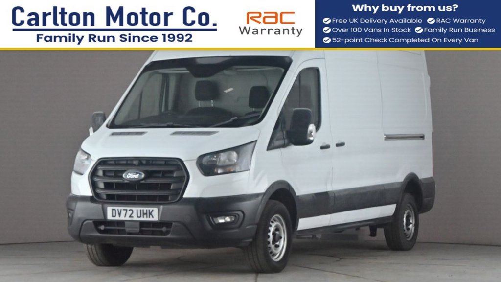1 Previous Owner, All our vehicles are prepared to the highest standards, RAC 52 point inspection, Mot / Oil & filter service on all vans if required. RAC Warranty included & extended warranties up to 36 months are available Also offer Free UK Delivery T&C Apply please check with our team. We are an RAC DEALER meaning you can buy in complete confidence! This also means we can offer a choice of extended warranty packages on all of our quality used commercias. We offer very competitive finance packages for all credit scores just hit the apply now button its so simple or get in touch with one of our team! [ We are family owned and run since 1992 ] + VAT We only got bigger by been better- Leaders not followers.16in Steel Wheels, 4.2in Monochrome TFT Non-Touch Screen with New SYNC 4 System, Airbags - Driver, Anti-Lock Braking System - ABS with Electronic Brake Force Distribution - EBD, Assist Handle - Located on B-pillar, Basics Pack 2 - Parking Sensors, Battery - Cold Start -20 Degree C, Black Dual Manual Signal Mirrors, Bottle Holder - Twin 2 litre Bottle Capacity - Facia-Mounted, Bulkhead - Full Steel, Bumper - Front Body Colour - Partial, Cargo Door Handle - Self Colour, Curve Control, Door Handles - Self Coloured, Door Mirror - Manual Adjust - Short Arm, Door Mirrors - Blind Spot Eliminator and Integrated Side Indicator, Door Mirrors - Manual Adjust, Doors - Unglazed Rear Doors - Hinged for 180 Degree Opening - Positive Stop At 90 Degree, EBA - Emergency Brake Assist, Electrically-Operated Front Windows with One-shot Up-down on Drivers Side, Emergency Brake Warning, EPAS - Electric Power Assisted Steering, ESP and Hill Launch Assist, Extra Heavy Duty Alternator, Ford Easy Fuel Capless Refuelling System with Misfuel Inhibitor, Front Grille - Self Colour, Frozen White, Gearshift Indicator Light, Headlights - Halogen with Daytime Running Lights, Headlights - Levelling Control, Headlights Courtesy Delay - 30 Seconds Duration, Headlining - Cab - Moulded, Heater - Positive Thermal Coefficient - PTC, High Mounted Stop Lamp, Immobiliser - Safeguard Passive Anti-Theft System - PATS - Insurance-Approved Category 2 Immobiliser, Kerbside Side Load Door, LAC - Load Adaptive Control, Less Steel Spare Wheel, Load Compartment - DIN 75410 Compliant Tie-down Loops, Locks - Audio Mislock Feedback - Audible Signal if a Door is Ajar When Locking Activated, Locks - Auto Locking on Drive-Away - Doors Automatically Lock at 8 kmh or 5 mph, Locks - Auto Relocking - Doors Relock after 45 Seconds if no Door is Opened, Locks - Configurable Unlocking - 2-Stage Unlocking, Locks - Key Operated Bonnet Release, Locks - Power Door Deadlocks - Shielded with Strengthened Mountings, Mechanical Parking Brake, MyKey, Power Point Socket - 2x 12V, Rear Axle Alt A, Rear Bumper - Self Colour with Integrated Step, Remote Central Locking with One Key Fob, RSC - Roll Stability Control, Seatbelts - 3 Point Diagonal Inertia Reel - All Seats, Seats - Drivers 4-Way Adjustment with Armrest, Selectable Drive Mode, Single Rear Wheels, Standard Duty Battery, Steering Column - Rake and Reach Adjustment, Steering Wheel - 4 Spoke Polyurethane, Storage - Front Door Map Pockets, Storage - Underseat Stowage Compartmen, Price Plus VAT