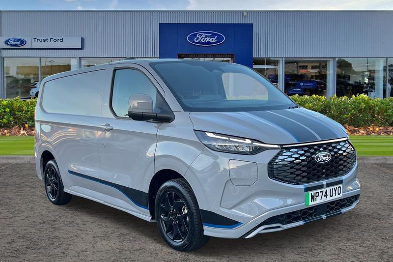 Anti-lock brake system, Passenger airbag, PAS, Front mud flaps, Rear spoiler, Electronic Stability Programme, Body coloured front bumper, Courtesy light, Traction control, Body coloured door mirrors, Automatic headlights, Thatcham category 1 alarm, Tyre pressure monitor, Body coloured rear bumpers, Tyre repair kit, Automatic windscreen wipers, Daytime running lights, Electric front windows with one touch facility for driver and front passenger, Low roof line, Keyless entry and start, Trailer sway control, LED tail lamps, 2 remote keys, Hill launch assist, Locking wheel lug nut, Rear cargo hinged door, 6 Load compartment tie down loops, Locking glove box lid, Wireless charging, SYNC 4 - Android Auto/Apple Car Play, advance speech recognition, over the air update capability, 13 Touchscreen, 5G embedded modem, Quickclear front window defroster, Interior grab handle with driver's sunglasses holder, Sensico gearshift knob, LED lights, Dual zone automatic air conditioning, AECS NO SMS/Roll Detect 2G, Vapor injected heater, Coast-to-coast light bar, Signature BEV Grille, Heat Pump, Close Assist, Hood Accent Stripes, Signature BEV Full wheel covers, Alcohol Interlock wiring preparation pack, Standard unlocking, USB/Aux power socket, Soft close assist, Price Plus VAT