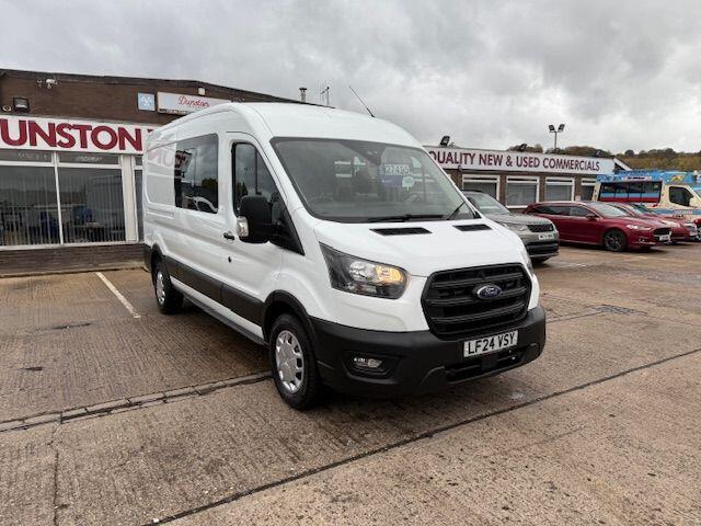 0 Previous Owners, This 2024 Ford Transit 350 Trend Crew Van presents a superb ownership proposition, having had only one owner since new. This manual L3 H2 Euro 6 compliant model is powered by an efficient 2.0 litre EcoBlue diesel engine, offering a robust towing weight of 2650 kg. The Trend trim level ensures a well equipped experience, enhanced further by the inclusion of the Driver Assistance Pack 2, which provides front and rear parking sensors along with a rear camera for added confidence. Comfort is also a priority, with automatic air conditioning and climate control fitted as standard.With an impressive cargo volume of 7000 litres and a substantial payload capacity of 1400 kg, this Transit Crew Van is exceptionally well suited for demanding work. These figures demonstrate its superior capability compared to many other vehicles in its class, making it an ideal choice for businesses requiring significant carrying capacity. The Euro 6 emission standard also means it meets current environmental regulations., Price Plus VAT