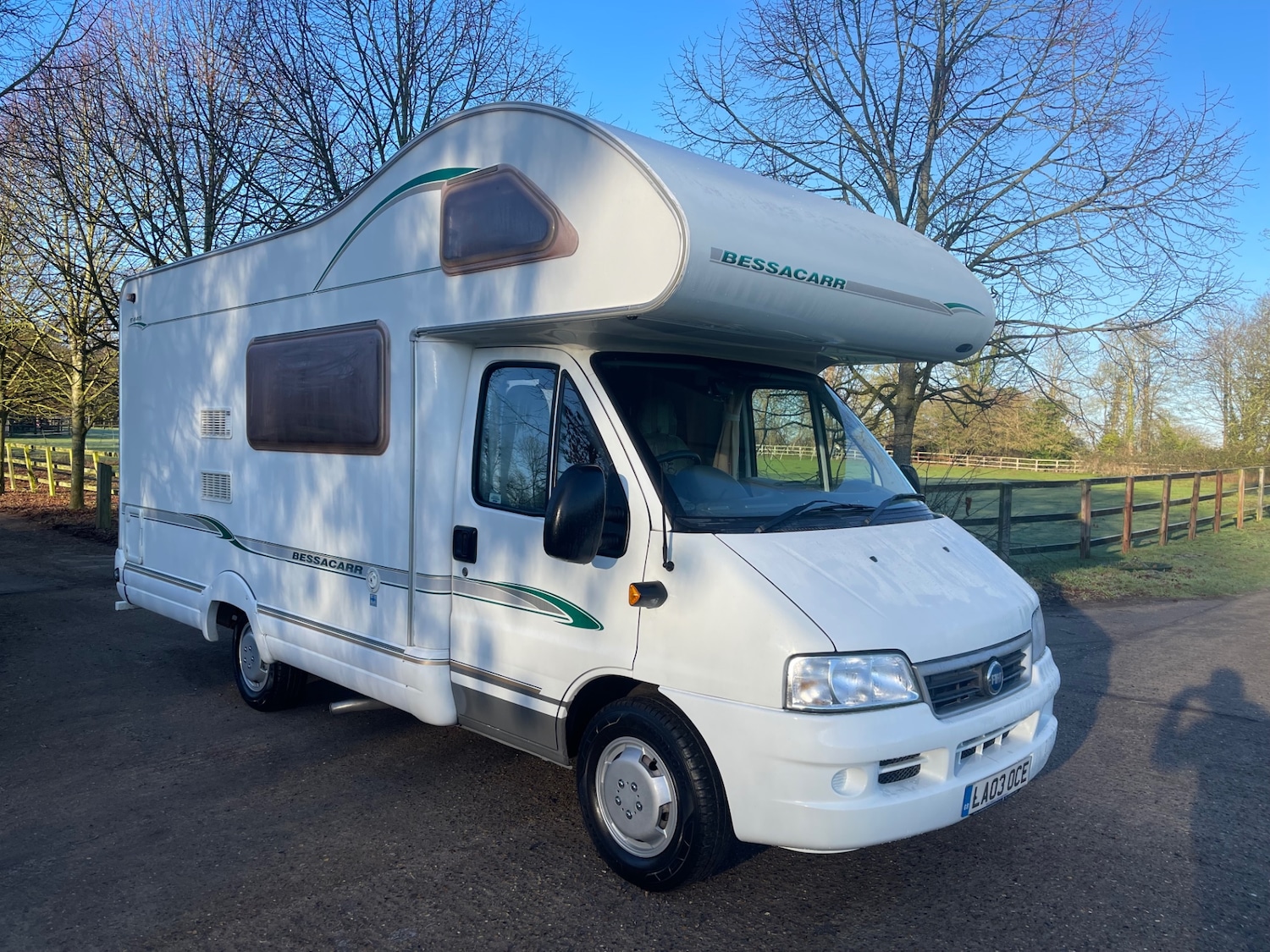 Insurance Group 12, Fiat Ducato bessacar E445, nice motorhome inside, 4 berth, 4 seatbelts, double bed above the cab, double bed with the bench seats, rear bathroom configuration, gas hob, gas cooker, 3 way fridge, 12v step, bike rack, everything will be working in the back of the motorhome, this motorhome will come with a new service, cambelt, new mot, 12 months mechanical warranty