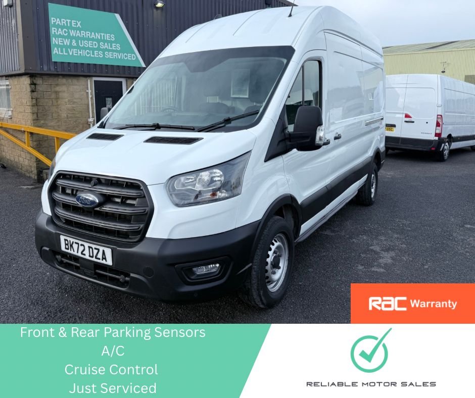 Brierfield0 Previous Owners, ALL OF OUR VEHICLES ARE SOLD WITH *12 MONTHS MOT* *A FRESH SERVICE* *PDI INSPECTION* * WARRANTY WHICH CAN INCLUDE RAC 6,12,24 OR 36 MONTH PLANS* *VALETED TO THE HIGHEST STANDARDS* *WALK ROUND VIDEOS ON REQUEST* GIVING YOU PIECE OF MIND WHEN PURCHASING FROM RELIABLE MOTOR SALES. This L3H3 rear wheel drive transit is 1 owner from new and comes with: New wet belt fitted A/C Front & rear parking sensors Electric windows DAB radio Ply lined rear Ready to drive away. FINANCE & UK DELIVERY AVAILABLE. Please call for viewings & test drives. .1 OWNER , NEW WET BELT , A/C, FRONT & REAR PARKING SENSORS, DAB RADIO, 16in Steel Wheels, 4.2in Monochrome TFT Non-Touch Screen with New SYNC 4 System, Airbags - Driver, Anti-Lock Braking System - ABS with Electronic Brake Force Distribution - EBD, Assist Handle - Located on B-pillar, Battery - Cold Start -20 Degree C, Black Dual Manual Signal Mirrors, Bottle Holder - Twin 2 litre Bottle Capacity - Facia-Mounted, Bulkhead - Full Steel, Bumper - Front Body Colour - Partial, Cargo Door Handle - Self Colour, Curve Control, Door Handles - Self Coloured, Door Mirror - Manual Adjust - Short Arm, Door Mirrors - Blind Spot Eliminator and Integrated Side Indicator, Door Mirrors - Manual Adjust, Doors - Unglazed Rear Doors - Hinged for 180 Degree Opening - Positive Stop At 90 Degree, EBA - Emergency Brake Assist, EPAS - Electric Power Assisted Steering, ESP and Hill Launch Assist, Electrically-Operated Front Windows with One-shot Up-down on Drivers Side, Emergency Brake Warning, Extra Heavy Duty Alternator, Ford Easy Fuel Capless Refuelling System with Misfuel Inhibitor, Front Grille - Self Colour, Gearshift Indicator Light, Headlights - Halogen with Daytime Running Lights, Headlights - Levelling Control, Headlights Courtesy Delay - 30 Seconds Duration, Headlining - Cab - Moulded, Heater - Positive Thermal Coefficient - PTC, High Mounted Stop Lamp, Immobiliser - Safeguard Passive Anti-Theft System - PATS - Insurance-Approved Category 2 Immobiliser, Kerbside Side Load Door, LAC - Load Adaptive Control, Less Steel Spare Wheel, Load Compartment - DIN 75410 Compliant Tie-down Loops, Locks - Audio Mislock Feedback - Audible Signal if a Door is Ajar When Locking Activated, Locks - Auto Locking on Drive-Away - Doors Automatically Lock at 8 kmh or 5 mph, Locks - Auto Relocking - Doors Relock after 45 Seconds if no Door is Opened, Locks - Configurable Unlocking - 2-Stage Unlocking, Locks - Key Operated Bonnet Release, Locks - Power Door Deadlocks - Shielded with Strengthened Mountings, Mechanical Parking Brake, MyKey, Power Point Socket - 2x 12V, RSC - Roll Stability Control, Rear Axle Alt A, Rear Bumper - Self Colour with Integrated Step, Remote Central Locking with One Key Fob, Seatbelts - 3 Point Diagonal Inertia Reel - All Seats, Seats - Drivers 4-Way Adjustment with Armrest, Selectable Drive Mode, Single Rear Wheels, Standard Duty Battery, Steering Column - Rake and Reach Adjustment, Steering Wheel - 4 Spoke Polyurethane, Storage - Front Door Map Pockets, Storage - , Price Plus VAT
