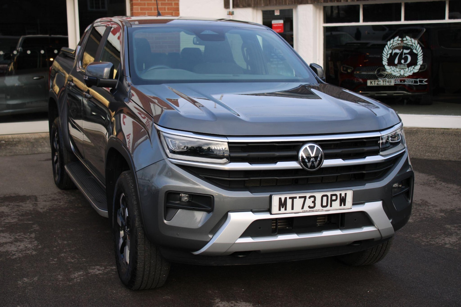 Otley0 Previous Owners, This 2023 Volkswagen Amarok 2.0 TDI Style Auto 4Motion is a remarkable find, boasting exceptionally low mileage for its age at just 11,900 miles and having had only one owner. This robust four wheel drive pickup is powered by a capable 2.0 litre diesel engine, delivering a strong 202 bhp. Its Euro 6 compliant engine also contributes to lower CO2 emissions, making it a more environmentally conscious choice. For those needing to tow, it offers an impressive 3500 kg towing weight.The Amarok Style trim comes equipped with a suite of advanced features designed for convenience and safety. These include IQ Light LED Matrix Headlights with Dynamic Light Assist for superior visibility, and an Area View 360 Camera system for effortless parking and manoeuvring. The Predictive Speed Limiter and Adaptive Cruise Control ACC, along with Dynamic Road Sign Display, enhance the driving experience, while Park Distance Control with Rear Traffic Alert ensures peace of mind in tight spaces. With a fuel economy of 32 mpg, this Amarok offers a compelling blend of performance and efficiency, setting it apart from other vehicles in its class., Price Plus VAT