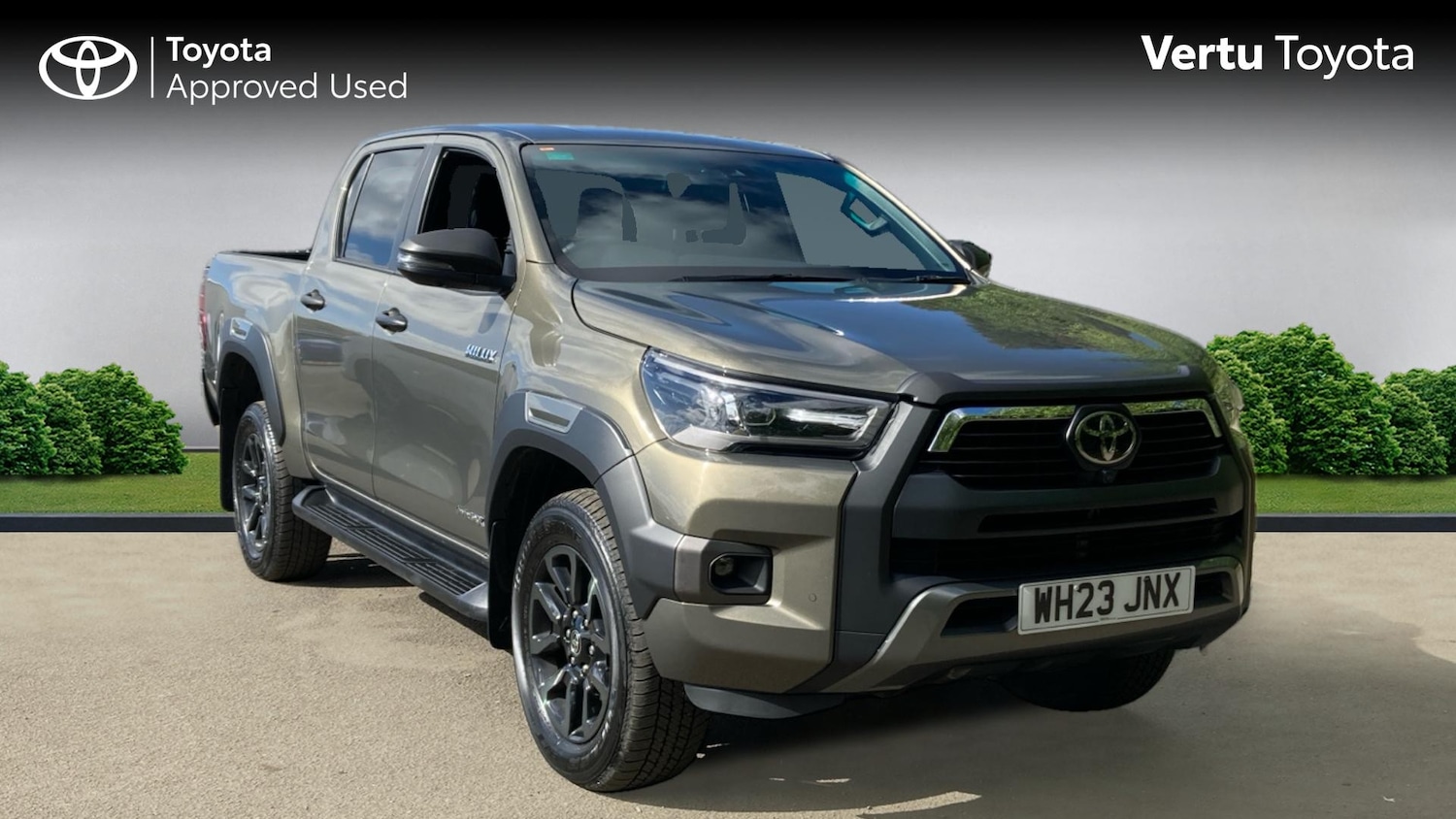 Insurance Group 0, 0 Previous Owners, 0, Franchise Approved, Vertu Motors Toyota Hamilton are proud to present the Toyota Approved Toyota Hilux Invincible X Double Cab 2.8 AutomaticIn stunningTitan BronzeUnleash the power of innovation with the 2031 Toyota Hilux Invincible X Double Cab 2.8 Automatic! Famous for its robust specification and remarkable fuel efficiency, this model is poised to redefine your driving experience.At its core lies a muscular 2.8-liter diesel engine, paired with ultra-smooth automatic transmission. It delivers output while maintaining commendable fuel efficiency, showcasing that power and economy can indeed go hand in hand.The interior is as impressive as its engine performance. The Hilux Invincible X features the latest Toyota Safety Sense suite, complete with a pre-collision system, adaptive cruise control, and rear cross-traffic alert for peace of mind on every ride.Stay connected and entertained with a touch-screen multimedia system featuring satellite navigation and Bluetooth connectivity. Plus, comfortable leather-headed seats and dual-zone automatic air conditioning ensure a premium ride for everyone.Externally, it commands presence on the road with bold styling and impressive performance features, including 18-inch alloy wheels, LED headlights, and a set of power-retractable door mirrors, making it a real showstopper.The 2031 Toyota Hilux Invincible X Double Cab 2.8 Automatic is not just a vehicle - it's a promise of an impressive blend of extended features, robust performance, and excellent fuel economy. Drive home the future of driving today with the Hilux Invincible X!.Manufacturer Approved, Price Plus VAT