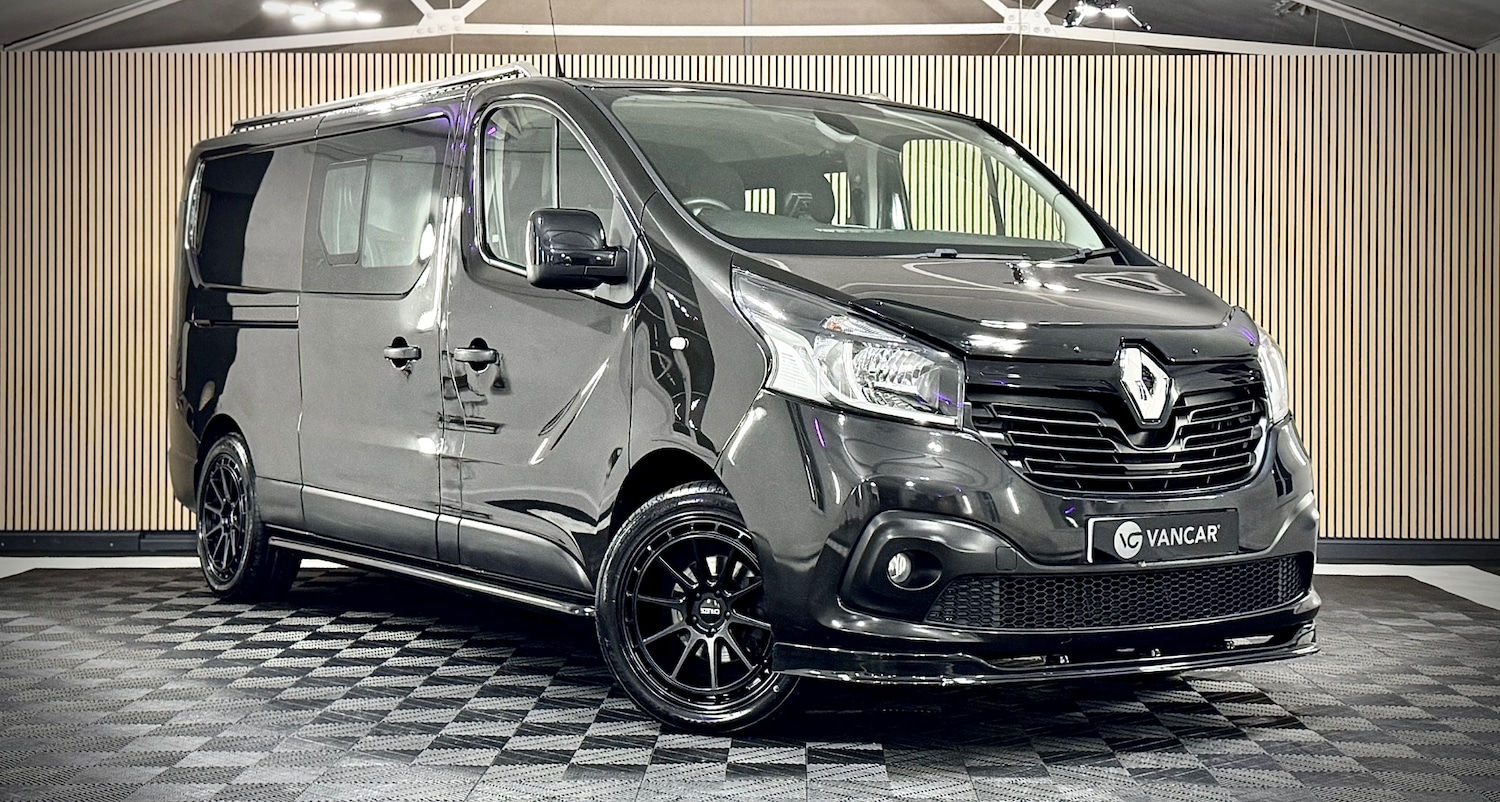 2 Previous Owners, Full Service History, Renault Trafic LWB Sport Nav Crew Van 2018(68) (Black) Here at Vancar we take great pride in hand selecting each vehicle to suit our customers individual needs. We are delighted to present this 2018 Renault Trafic LWB Sport Nav Crew Van finished in Midnight Black Metallic with only 69000 miles. This vehicle is in exceptional condition both mechanically and cosmetically, a real credit to its previous owner. It comes with a good service history and a long MOT. The specification includes parking sensors, reverse camera, DAB radio, Bluetooth connectivity, satellite navigation, air conditioning, USB charging point and cruise control.It drives extremely well with no knocks, bangs or rattles and pulls smoothly through all gears. The van has been enhanced in house with brand new gloss black 19 inch Premium alloy wheels fitted with new tyres all round, satin black side bars, a gloss black front lower splitter and a gloss black rear spoiler. These additions complement the Black paintwork perfectly giving it a unique and Stealthy appearance, All vehicle health checks have been completed and passed giving all round peace of mind, All part exchanges are considered. Finance options are available with a free no obligation quote. Collection and delivery can be arranged. Viewing is by appointment only. The van is supplied with a complimentary 3 month warranty, extendable through our trusted partner Warranty Wise.Please contact us to confirm availability or for any further information.
