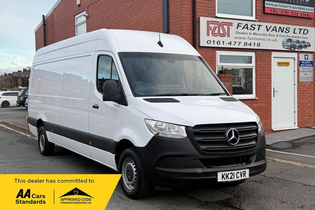 1 Previous Owner, Mercedes Sprinter 315 CDI, Euro 6, Progressive, LWB, High Roof, 2021 21 Reg, 90 000 Miles (Warranted), Cruise Control, MultiFunctional Steering, On Board Computer, Bluetooth Telephone Kit, 150 BHP, 3 Seater Cab, Side Loading Door, Central Locking, Electric Windows, 6 Speed, Power Assisted Steering, Immobiliser, Apple Car Play, DAB Radio, Drivers Airbag, Head Restraints, Height Adjustable Drivers Seat, Cloth Seat Trim, Factory Fitted Steel bulkhead, Ply lined, ESP, ABS, Traction Control. All our vehicles come with a fullservice history, ensuring you have detailed records of their maintenance. Each vehicle undergoes thorough HPI checks to verify its background and is generally one owner from new. All vehicles come with a minimum 6month MOT and are backed by our standard 3month or 3000mile warranty, whichever occurs first. Extended AA warranty options are available, ranging from 6 to 36 months. We also offer a service to provide you with a walkaround video to view vehicles, with options available to click and collect or click and deliver. We provide full dealer facilities, lowrate finance options, and welcome partexchanges. Explore our range of vehicles on our website at www.fastvans.co.uk..16in Steel Wheels 6.5J x 16, ABS AntiLock Braking System, Active Brake ASSIST, Adaptive Brake Lights, Adaptive ESP Electronic Stability Programme, Airbag Driver, Alternator 14V 180A, Alternator 14V 200A, Android Auto, AntiTheft Protection Package, Apple CarPlay, ATTENTION Assist, Bluetooth Interface for HandsFree Telephone, Breakdown Management, Bulkhead FullWidth Partition, Comfort Overhead Control Panel, Communication Module LTE For Digital Services, Crosswind Assist, Cruise Control, DAB Digital Radio Tuner, Doors Sliding Side Load Door on Left Side, Double Locks, DoubleWing RearEnd Doors Opening to Side Wall, Drivers Seat, Dual Front Passenger Seat, Electric Windows Front, Entrance Handle on Righthand Rear Corner Pillar, Fuel Filter with Water Separator, Grab Handle Load Compartment Sliding Door at Partition, HeatInsulating Glass with Filter Band on Windscreen, Heavy Duty Battery 12V 92Ah, Hill Start Assist, Hydraulic Jack, Interior Lights Load Passenger with Door Contact, Jump Start Contact, Keyless Start, Lighting Headlight Assistant, Lights for Left Hand Traffic, Longitudinal Member Reinforcement, MBUX Multimedia System with 7inch Touch Screen, Mercedes PRO Connect, MercedesBenz Emergency Call System eCall, Multifunction Steering Wheel, Outside Air Temperature Gauge, PowerAssisted Steering, PreInstallation for Switch Panel, Prewiring for Parameterizable Special Module PSM, Remote Central Locking, Seat Belt Reminder Driver, Shelf Above Windscreen, Side Marker Lights, Spare Wheel, Spare Wheel Bracket Below Frame End, Speedometer mph and kmh, Steering Wheel Rake and Reach Adjustment, Storage Hinged Lid for Stowage Compartment, Storage Compartment Underneath Cockpit, Summer Tyres, Terminal Strip for Electrical Connection, Third Brake Light, Tyres 23565 R16 C, Tyres ResistanceOptimised, Tyres without Name of Make, USBC Socket 5V, VIN Visible from Outside, WiFi Hotspot Requires a Separate Data Contract with Vodafone which can be Purchased Through the MBUX Head Unit., Wood Floor in Cargo Area, Price Plus VAT