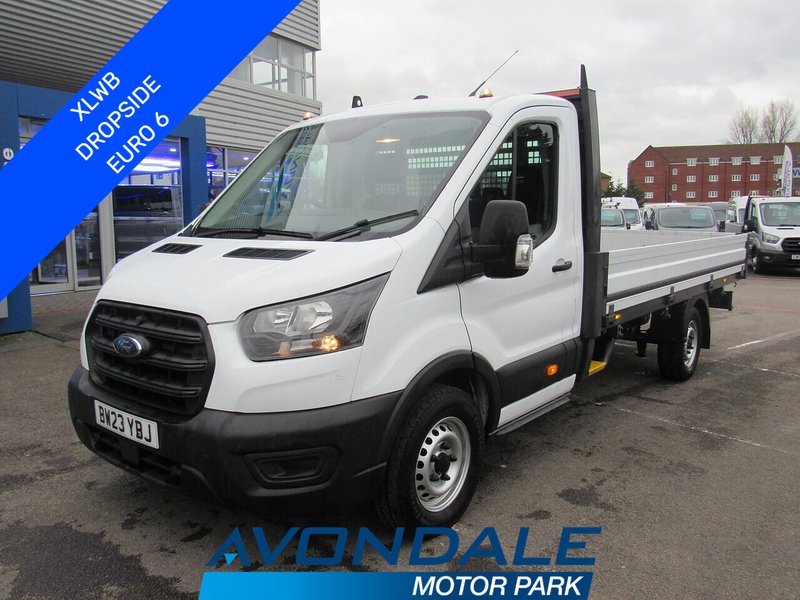 1 Previous Owner, JUST ARRIVED AT THE UK'S VAN SUPERSTORE, SUPPLIED WITH A 12 MONTH WARRANTY; FORD TRANSIT L4 EXTRA LONG WHEEL BASE DROPSIDE WHICH HAS THE EURO 6 ENGINE, 3 FRONT SEATS, 6 SPEED MANUAL GEARBOX AND 2 KEYS. THIS DROPSIDE IS READY TO GO TO WORK;THIS MONTH, TAKE ADVANTAGE OF FREE DELIVERY WITHIN 200 MILES OF OUR DEALERSHIP LOW FINANCE RATES; HP BALLOON AVAILABLE PARTEXCHANGE WELCOME01633 444 999.Frozen White,Spare Wheel Steel, 4.2in Monochrome TFT NonTouch Screen with New SYNC 4 System, Emergency Assistance, Power Point Socket 2x 12V, Gearshift Indicator Light, PreCollision Assist, Selectable Drive Mode, Trip Computer, Water in Fuel Filter with Sensor, 16in Steel Wheels, Black Dual Manual Signal Mirrors, Bumper Front Body Colour Partial, Door Mirrors Blind Spot Eliminator and Integrated Side Indicator, ElectricallyOperated Front Windows with Oneshot Updown on Drivers Side, Fixed Rear Windows, Front Grille Self Colour, Low Roof Line, Roof Marker Lights, Side Marker Lights, Single Rear Wheels, Tinted Glass, Wheel Covers Half Caps, Wide Bodyside Grey Moulding, Headlights Halogen with Daytime Running Lights, Headlights Levelling Control, Bottle Holder Twin 2 litre Bottle Capacity FaciaMounted, Config Interior Lighting Battery Saver 10 Minutes, DayNight Inside Mirror, Drivers 8Way Seat Adjustable with Armrest, Front 2Way Head Restraints, Gearshift Knob Moulded, Header Courtesy Light, Headlining Cab Moulded, Interior Trim Accent Pack A, LAC Load Adaptive Control, Lid Glove Box, Locks Audio Mislock Feedback Audible Signal if a Door is Ajar When Locking Activated, MyKey, Overhead Console, Partial Molded Headliner, Recirculation Heater Front, Rubber Partial Floor Cover, Seatback Folddown Table, Steering Column Rake and Reach Adjustment, Steering Wheel 4 Spoke Polyurethane, Storage Drivers Side Storage Compartment on Facia Top, Storage Front Door Map Pockets, Storage Underseat Stowage Compartment Under Dual Passenger Seat, Tablet Holder, Unperforated Cab Back Panel, Vehicle Maintenance Monitor, Wipers Intermittent Variable Windscreen, Alternator Standard Duty 165Amp, Battery Cold Start 20 Degree C, EPAS Electric Power Assisted Steering, Rear Axle Alt A, Speed LimiterEngine Governor 75mph 120kph, Standard Duty Battery, Suspension Front Independent MacPherson Struts Variable Rate Coil Springs Stabiliser Bar GasPressurised Shock Absorbers and Rear Leaf Springs, Airbags Driver, Curve Control, DualCircuit Front and Rear Discs with SelfAdjusting ServoAssistance and ABS, EBA Emergency Brake Assist, ESP and Hill Launch Assist, Ford Easy Fuel Capless Refuelling System with Misfuel Inhibitor, Immobiliser Safeguard Passive AntiTheft System PATS InsuranceApproved Category 2 Immobiliser, Locks Auto Locking on DriveAway Doors Automatically Lock at 8 kmh or 5 mph, Locks Auto Relocking Doors Relock after 45 Seconds if no Door is Opened, Locks Configurable Unlocking 2Stage Unlocking, Locks Key Operated Bonnet Release, Locks Power Door Deadlocks Shielded with Strengthened Mountings, Mechanical Parking Brake, Remote Central Locking with One Key Fob, RSC Roll Stability Control, Seatbelts 3 Point Diagonal Inertia Reel All Seats, Vehicle Identification Number VIN Visible, Price Plus VAT