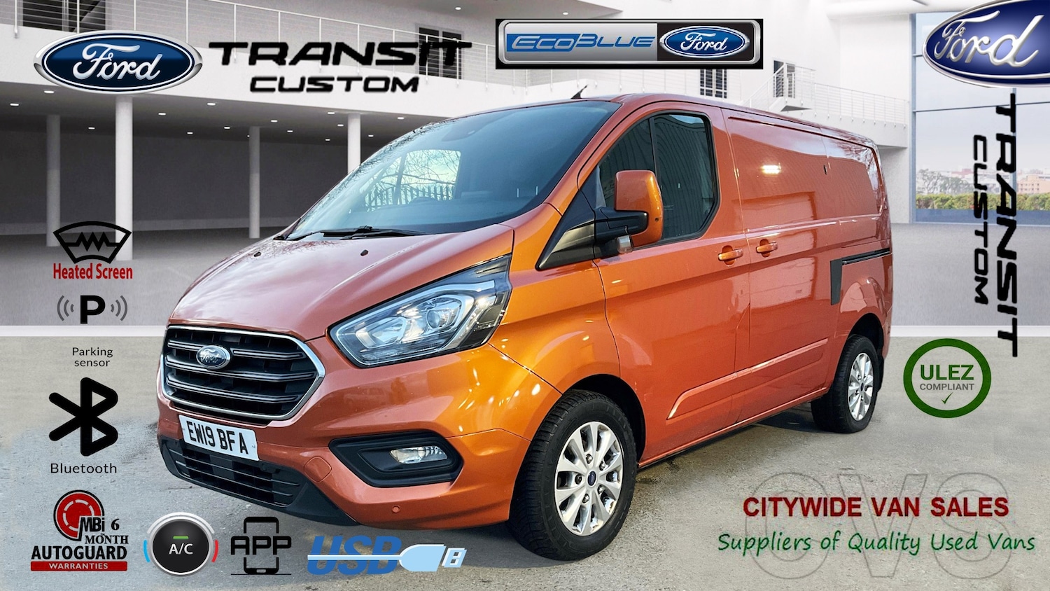 1 Previous Owner, NO VAT Arriving Soon Please Phone For More Information, The Vehicle Will undergo a FULL PREDELIVERY INSPECTION, NEW MOT, SERVICE, FULL MACHINE POLISH and VALET at our inhouse workshop facilities, SPECIAL OFFER, 3 MONTH WARRANTY EXTENDED TO A 6 MONTH MBi AUTOGUARD WARRANTY AND 6 MONTH,S ROAD TAX FREE, 2019/19 Ford Transit Custom 2.0 EcoBlue 130ps Low Roof Limited Van, Side Loading Door, PlyLined,Dual Passenger Seat, Factory Fitted Bulkhead, Air Conditioning, Airbag: Driver, Alloy wheels, Antilock Brakes, Bluetooth, Colour Coded Bumpers & Mirrors, DAB Radio, Door mirror indicators, Electric Mirrors, Electric Windows, Front Fog Lights, Heated Screen & Seats, Immobiliser, Mobile phone App interface, Parking Sensors, Power Assisted Steering,Remote central locking, Service interval indicator, Toutch Screen Media Controle, Trip Computer, USB, we offer a FULL AFTERSALES SERVICE from our own Workshops based at Ninian Park Road Cardiff CF11 6HE, just .5 miles from our VAN SALES SITE, we offer MOT TESTING, SERVICING, REPAIRS AND DIAGNOSTICS. In the unfortunate event that your vehicle develops a problem we can provide the Service you deserve as a Valued Customer. WE HAVE IN STOCK UPTO 80 USED VANS, ALL MAKES ALL MODELS TO SUIT ALL BUDGETS, CHECK OUR WEBSITE If we do not have the van to suit we CAN locate it for you ring us on The vehicle comes with PEACE OF MIND 90 day/3000 miles PERSONAL WARRANTY [terms & conditions apply]We are One of the LARGEST independent USED VAN DEALERS and been in Business since 2002, ULEZ Compliant Euro 6C CO2 Emissions Rating H 171g km Drive confidently in low emission zones