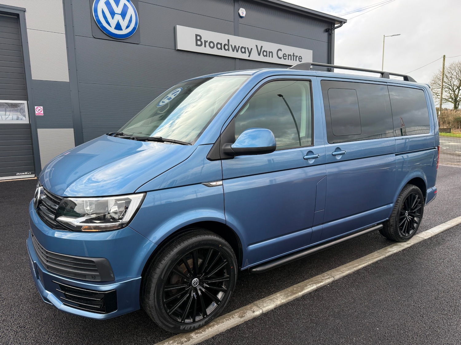Pontypridd1 Previous Owner, 18/68 VW TRANSPORTER 5 SEAT KOMBI SWB IN ACAPULCO BLUE EURO SIX WHICH HAS COVERED 37,000 MILES WITH ONE PREVIOUS OWNER AND FULL SERVICE HISTORY. THIS VEHICLE BENEFITS FROM AIR CONDITIONING, REAR HEATER, FRONT AND REAR PARKING SENSORS WITH REAR VIEW CAMERA, SAT NAV, PRIVACY GLASS, BLUETOOTH PHONE PREP, USB INTERFACE, OPENING SIDE WINDOWS, TWIN SIDE DOORS, TAILGATE, ELECTRIC WINDOWS AND MIRRORS, COLOUR CODED BUMPERS AND MIRRORS, FRONT SPOILER, REAR SPOILER, SPORTLINE SIDE BARS, ROOF BARS, CARPETED REAR, 20in ALLOYS £24,995 NO VAT GOOD FINANCE RATES PART EXCHANGE WELCOME WE CAN DELIVER WE HAVE OVER 40 TRANSPORTERS IN STOCK SEE WEBSITE FOR MORE DETAILS www.broadwayvancentre.com