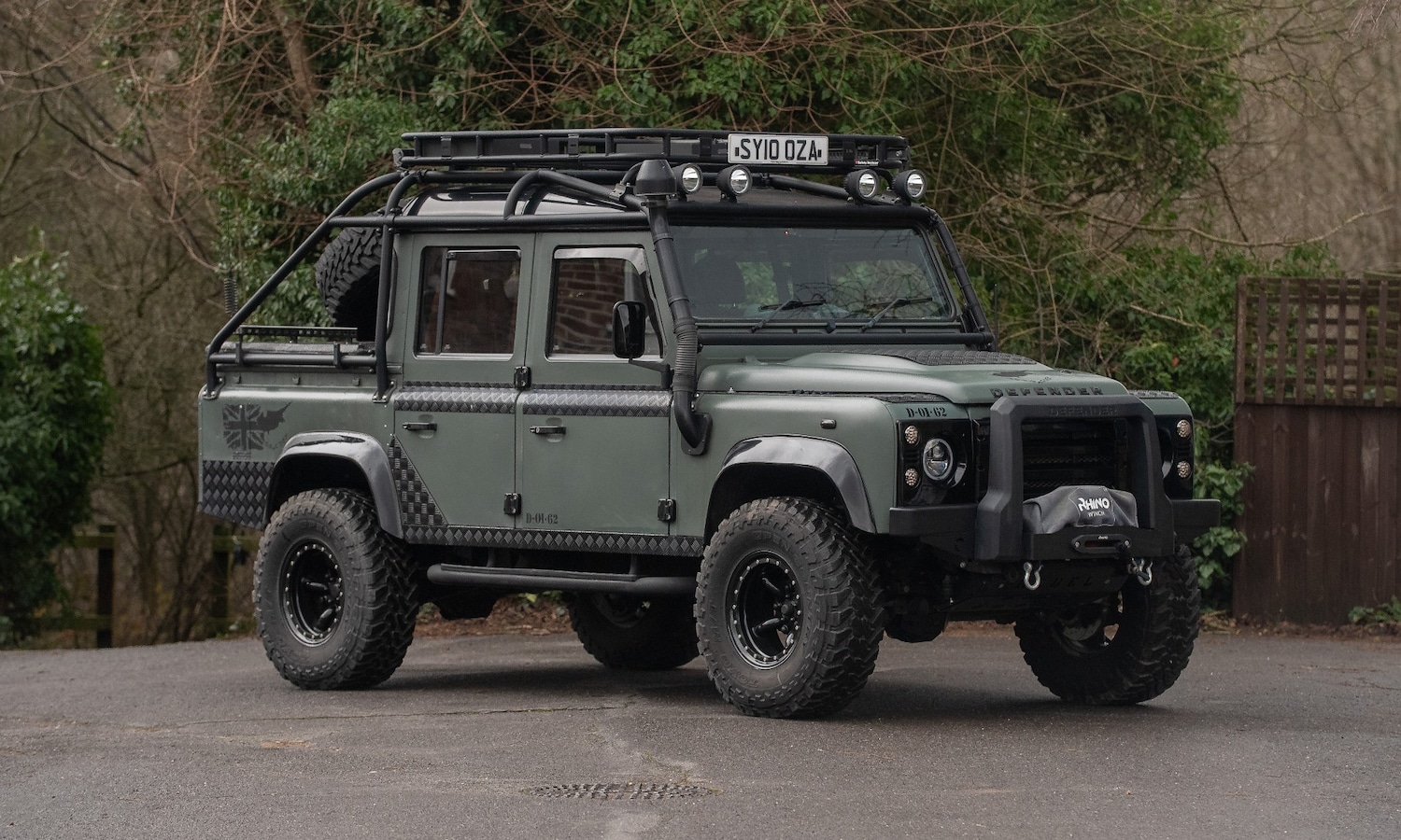 IverThis Lot will be sold at auction at Symphony of Spring; Ascot Racecourse on Saturday 7th March. Baremetal restorationMany fabulous upgrades (some listed below)This is a meticulously restored Land Rover Defender 110 Double Cab, taken back to bare metal and rebuilt from the ground up with all new parts, nuts, and bolts! It is fully loaded with premium upgrades, making perfect for serious offroading, overlanding, or an ultimate adventure rig.Below provides you with the key features and upgrades:Full Respray in its original colour, buffed to a matte finish.Complete soundproofing roof, floors and doors for a quieter, more comfortable ride.New suspension Terrafirma 2 lift with new springs and shocks all around.Brand new wheels and tyres, 33 offroad tyres for maximum traction.Upgraded braking system, front and rear disc brake upgrade for superior stopping power.Ashcroft transmission and differentials, built for extreme offroad capability.Front and rear diff locks, improved traction in tough terrain.Front winch, making it ready for serious offroad recovery.Safety devices 10.4 Roll Cage which provides superior protection and rigidity.Explorer roof rack which gives it sturdy storage for gear and accessories.ARB Twin Air Compressor, for onboard air system for tyre inflation and tools.Full LED lighting upgrade Including front and rear flood lights and allround illumination.Custom Rear Setup:Shower and water tank which are essential for overlanding and camping.Camping cooker with 2 gas rings which provides for outdoor cooking convenience.Bespoke wheel carrier and back lid for secure and practical storage.Wading pipes, axles and gearbox upgrades which are designed for extreme offroad use.Slickshift gears fitted which has improved gear changes for a smoother drive.Front and rear differential guards providing essential protection for rough terrain.HiLift jack included. A musthave for serious off roaders.Bespoke petrol cover plate with lock; this is for added security.This Defender 110 has been built with no expense spared, combining classic ruggedness with modern upgrades. Whether youre looking for a capable offroad machine, an overland expedition rig, or a standout daily driver, this Defender ticks all the boxes. Consigned by James Good