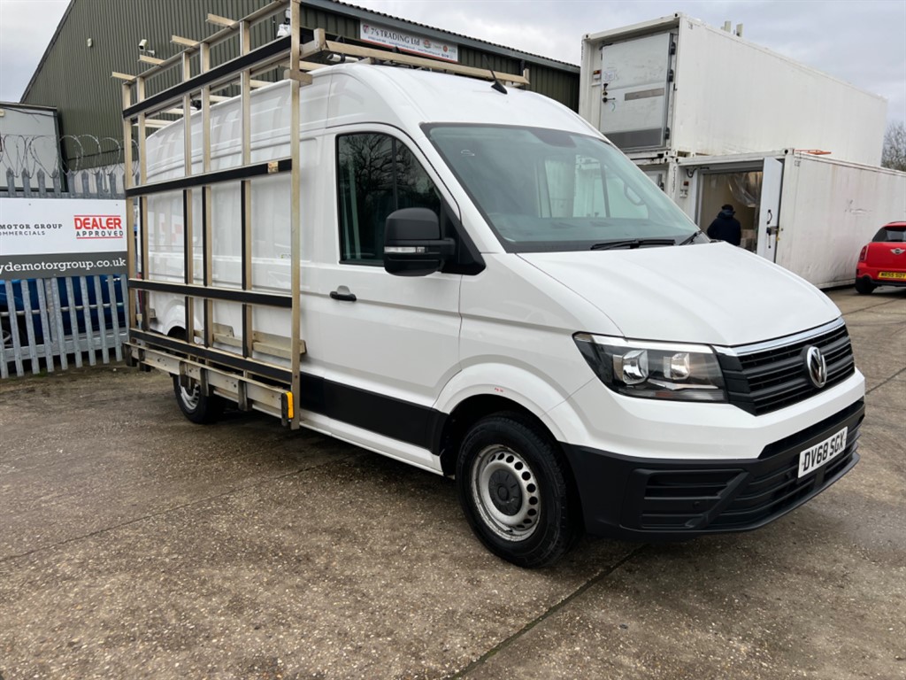 Stevenage0 Previous Owners, Volkswagen Crafter MWB 2018 2.0 Turbo Diesel engine 6 Speed Manual Gearbox 66K Miles Direct council so well maintained. MEDIUM WHEEL BASE EURO 6 ULEZ AIR CON FULL GLAZING SIDE RACK FULL ROOF RACK WITH LADDER CARRIER POWER INVERTER VAN RACKING & SAFE Parking Sensors Electric windows 1 Owner from new Full Service History Full logbook HPI Clear 3 Months Engine & Gearbox warranty Www.hydemotorgroup.co.uk. 12V Socket Front x2,16in Steel Wheels,1x Remote Control Folding Key 1 Rigid Key,ABS AntiLock Braking System,Airbags Driver,Automatic Hazard Lights Activation Under Emergency Braking,Automatic PostCollision Braking System,Basic Single Drivers Seat,Composition Audio,Crosswind Assist,Driver Alert System,Dual Passenger Seat in Cab with Storage Compartment and Folding Tray in Backrest,EBA Electronic Brake Assist,ESP Electronic Stability Programme Load Adjusting,Electric Windows Front,Electromechanical Servotronic Steering,Engine Immobiliser,Front Assist including City Emergency Braking,Full Height Steel Bulkhead without Window,Full Size Steel Spare Wheel,Glove Compartment Illuminated with Lockable Lid,Halogen Main Headlights with Range Control and Daytime Running Function,Load Lashing Rings,Lockable Fuel Filler Cap,Manual Side Sliding Door Passenger Side,Parking Brake Hill Hold Control,Rear Wing Doors Without Windows,Rubber Floor Covering,Seatbelt Warning Light For Driver,Steering Wheel Reach and Rake Adjustable,Three Point Inertia Reel Seatbelts for all Seats,Tool Kit and Jack,Two 12V Outlets Dashboard,Windscreen Wiper with Variable Intermittent Delay and WashWipe System,Wing Mirrors Manually Adjustable,Without Floor Covering in Cab,Without Floor Covering in Load Compartment, Price Plus VAT