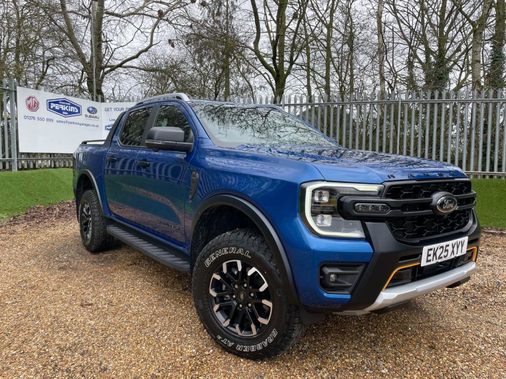Braintree0 Previous Owners, Franchise Approved, FORD NEW MODEL Ranger Wildtrak X 2.0L BiTurbo 205PS 10SPD AUTO in BLUE LIGHTNING / Embossed Leather EK25XYY with 9200 miles. Ford Warranty until 26/03/2028 ** Next service due: MARCH 2027 ** NO VAT ** Wildtrak X Pack with MATRIX LED Headlights / ICE Pk 106 B&O premium Audio / Tech Pack 83 / Aux Grill Lights / ** Power Mountain top Roller shutter ** Factory Tow Bar ** SYNC 4A Satellite Navigation ** DAB Audio / Apple Car Play / Android Auto ** Technology Pack 52 with Adaptive Cruise Control / Front and Rear Park Sensors and Rear Vision Camera and Blind Spot Monitors ** Power Pack 3 with Wireless Charge Pad ** 3500KG towing Capacity ** Climate Control ** Load Box Rear Bed Liner ** 2 x ISO FIX ** Auto Wipers ** Auto Lights ** Auto headlights ** 7 Drive Modes ** Heated Seats ** Heated Steering Wheel ** Powered 10way adjustable drivers seat ** we offer 8.9% APR Low Rate Finance and allpart exchanges are welcome .NO VAT to pay, 1 Owner from New, Towbar, Manufacturer Warranty Balance, Leather upholstery, Wildtrak X Pack, SYNC 4 Navigation Suite, 360 Cameras, Ford Auto Park Assist, Full Main Dealer History, Bang & Olufsen Pro Audio, Winter Pack, Bluetooth Hands Free Telephone Connection, Blind Spot Monitors, Adaptive Cruise Control, Sidesteps, Alarm, Driver Passenger & Curtain Airbags, Electric Mirrors, Electric Seats, Electric Windows, Heated Front Screen, Heated Seats, Lumbar Support, Park Distance Control, 8.9% APr Low Rate finance Available, Wireless Charge Pad, Remote Key Locking, Smart Windscreen Wipers, Electric Rear Roller shutter, Driver Assist Pack, Factory Detachable Tow Bar, 18" Alloys, Bluetooth, Traffic sign Recognition, Dual Zone Climate Control, All Wheel Drive, Wireless charge Pad, Technology Pack,