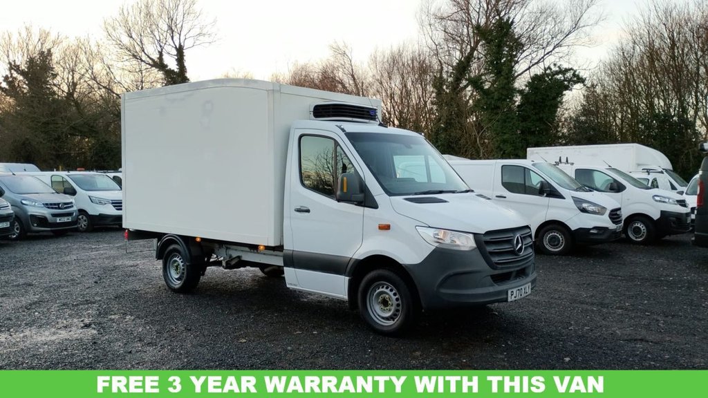 0 Previous Owners, Fridge Box Van Automatic 7GTronic Ultra Rare Specification. KEY FEATURES: Super Rare Automatic Transmission: Highly soughtafter 7speed 7GTronic automatic gearbox. Excellent Base Vehicle: Perfect project van to convert into a Tipper, Dropside, or any specialist body. Fridge box currently fitted. Impeccable History: Just 1 careful owner from new. Supplied with 2 full keys. Great Condition: Wellmaintained inside and out, ready for its next chapter. Modern Conveniences: Includes Reverse Camera, Bluetooth phone connectivity, Electric Windows, and Traction Control for safety. SPECIFICATION: Registration: 70Plate (Late 2020/early 2021) Transmission: 7Speed Automatic (7GTronic) Body Type: Fridge Box Van (Ideal for conversion) Ownership: 1 Owner from new Keys: 2 Keys IDEAL FOR: Trade professionals looking for a premium base for a tipper conversion. Conversion specialists seeking a rare automatic chassis cab. Businesses needing a reliable, comfortable, and wellequipped van. Dont miss this exceptional opportunity to acquire a rare automatic Sprinter in fantastic condition. Its versatility and specification make it a standout choice. CALL NOW TO ARRANGE A VIEWING! NEED LOW RATE VAN FINANCE WE CAN HELP // RING MARK ON 07766461200 .16in Steel Wheels 6.5J x 16, ABS AntiLock Braking System, ATTENTION Assist, Active Brake ASSIST, Adaptive Brake Lights, Adaptive ESP Electronic Stability Programme, Airbag Driver, Alternator 14V 200A, AntiTheft Protection Package, Armrest for Drivers Seat, Breakdown Management, Comfort Overhead Control Panel, Communication Module LTE For Digital Services, Crosswind Assist, Cruise Control, DAB Digital Radio Tuner, Double Locks, Drivers Seat, Dual Front Passenger Seat, Electric Windows Front, Fuel Filter with Water Separator, Fulllength Partition, HeatInsulating Glass with Filter Band on Windscreen, Heavy Duty Battery 12V 92Ah, Hill Start Assist, Hydraulic Jack, Jump Start Contact, Keyless Start, Lighting Headlight Assistant, Lights for Left Hand Traffic, Longitudinal Member Reinforcement, MBUX Multimedia System with 7inch Touch Screen, Mercedes PRO Connect, MercedesBenz Emergency Call System eCall, Multifunction Steering Wheel, Outside Air Temperature Gauge, PowerAssisted Steering, PreInstallation for Switch Panel, Prewiring for Parameterizable Special Module PSM, Remote Central Locking, Seat Belt Reminder Driver, Shelf Above Windscreen, Side Marker Lights, Spare Wheel, Spare Wheel Bracket Below Frame End, Steering Wheel Rake and Reach Adjustment, Storage Hinged Lid for Stowage Compartment, Storage Compartment Underneath Cockpit, Summer Tyres, Suspension Stabilisation Level I, Terminal Strip for Electrical Connection, Tyres 23565 R16 C, Tyres ResistanceOptimised, Tyres without Name of Make, USBC Socket 5V, USBC and Bluetooth Interface WIFI Hotspot Apple CarPlay Android Auto and a DAB Radio, VIN Visible from Outside, Price Plus VAT