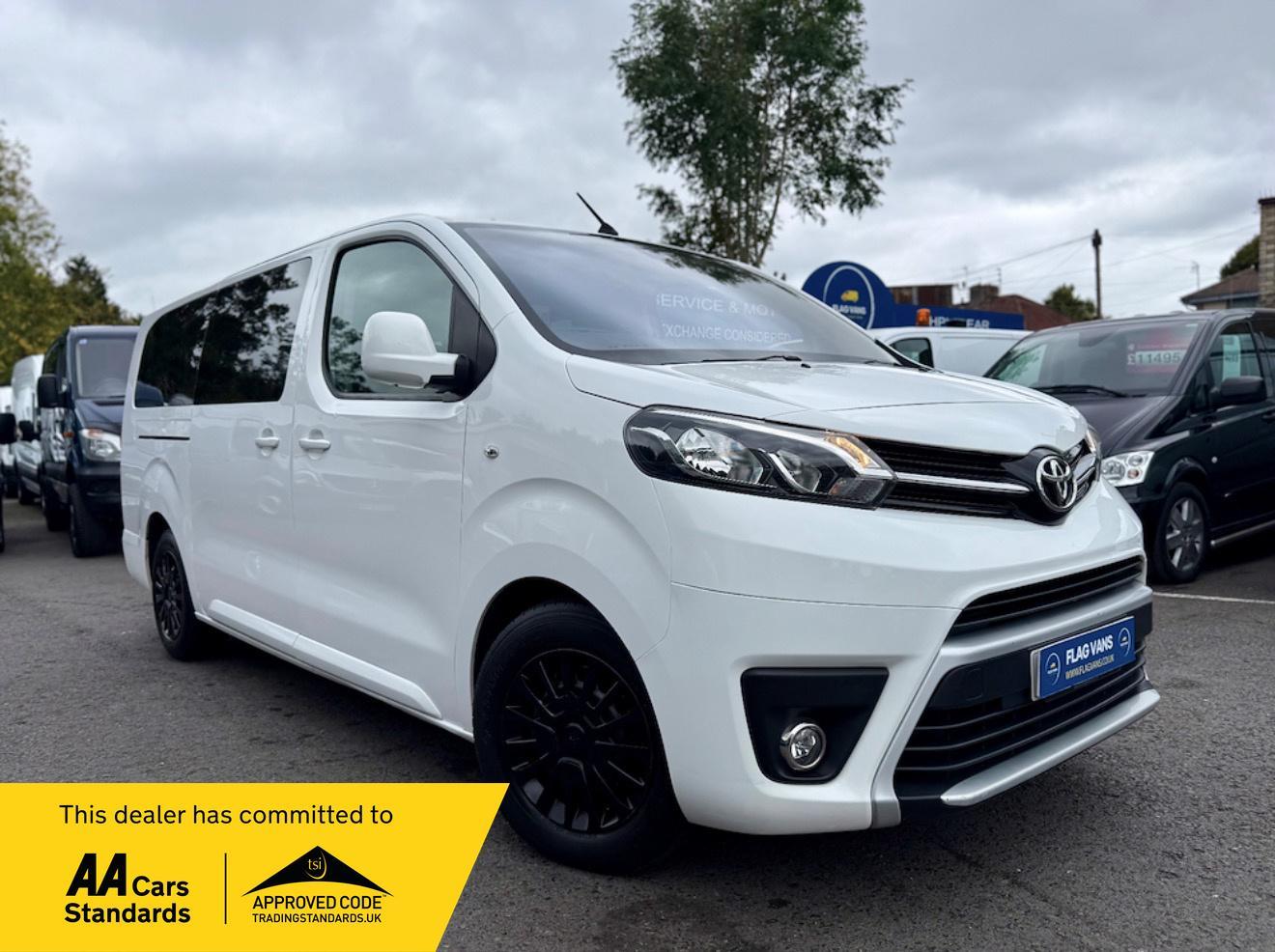 Bristol2 Previous Owners, ???? 2018 Toyota ProAce Verso L2 Shuttle 9 Seater EURO 6 ULEZ COMPLIANT NO VAT A spacious and practical 9seat shuttle, ideal for family, executive travel or business use. Presented in great condition and ready to drive away. ? Full service history ? New cambelt kit July 2025 ? New clutch & flywheel May 2025 ? MOT until 25th February 2027 no advisories Spec includes: Climate control, cruise control, rear parking sensors, dual side sliding doors, electric windows & mirrors, Bluetooth. ?? Included with Flag Vans: AA Approved Dealer Recently serviced 3month warranty (extendable up to 24 months) 12month breakdown cover Finance available Nationwide delivery Part exchange welcome No admin fees ???? Price: £16,995 NO VAT Flag Vans Quality Vans. Trusted Family Service ???? www.flagvans.co.uk