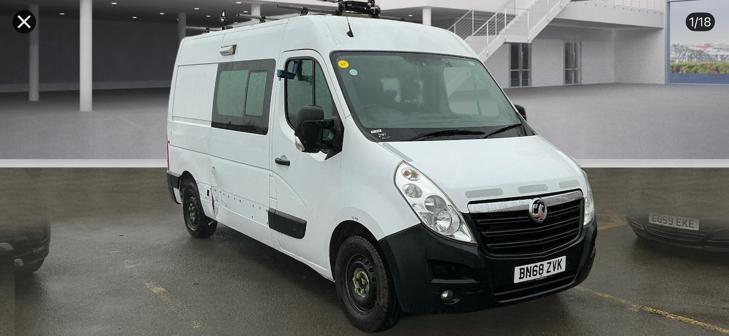 SkiptonExFleet, 0 Previous Owners, Full Service History, 2018 68 Vauxhall Movano 2.3cdti 130bhp 6 speed manual, L2 H2 , Euro 6 add blue congestion free Ulez compliant, finished in white , black sports cloth interior, air conditioning, Webasto overnight diesel heater , 240v leisure battery system, usb points , outdoor and indoor led lights , parking camera, electric windows electric mirrors, weight system, boiling water system, hot and cold hand wash system, rear workshop, Ex network rail , 101000 miles meticulously service history , cost on excess of 60k , great vans especially to convert to Campervan , location is Yorkshire, nationwide delivery is available, walk around video available on request instantly, please phone , choice of 6 all mileages available stock changing daily