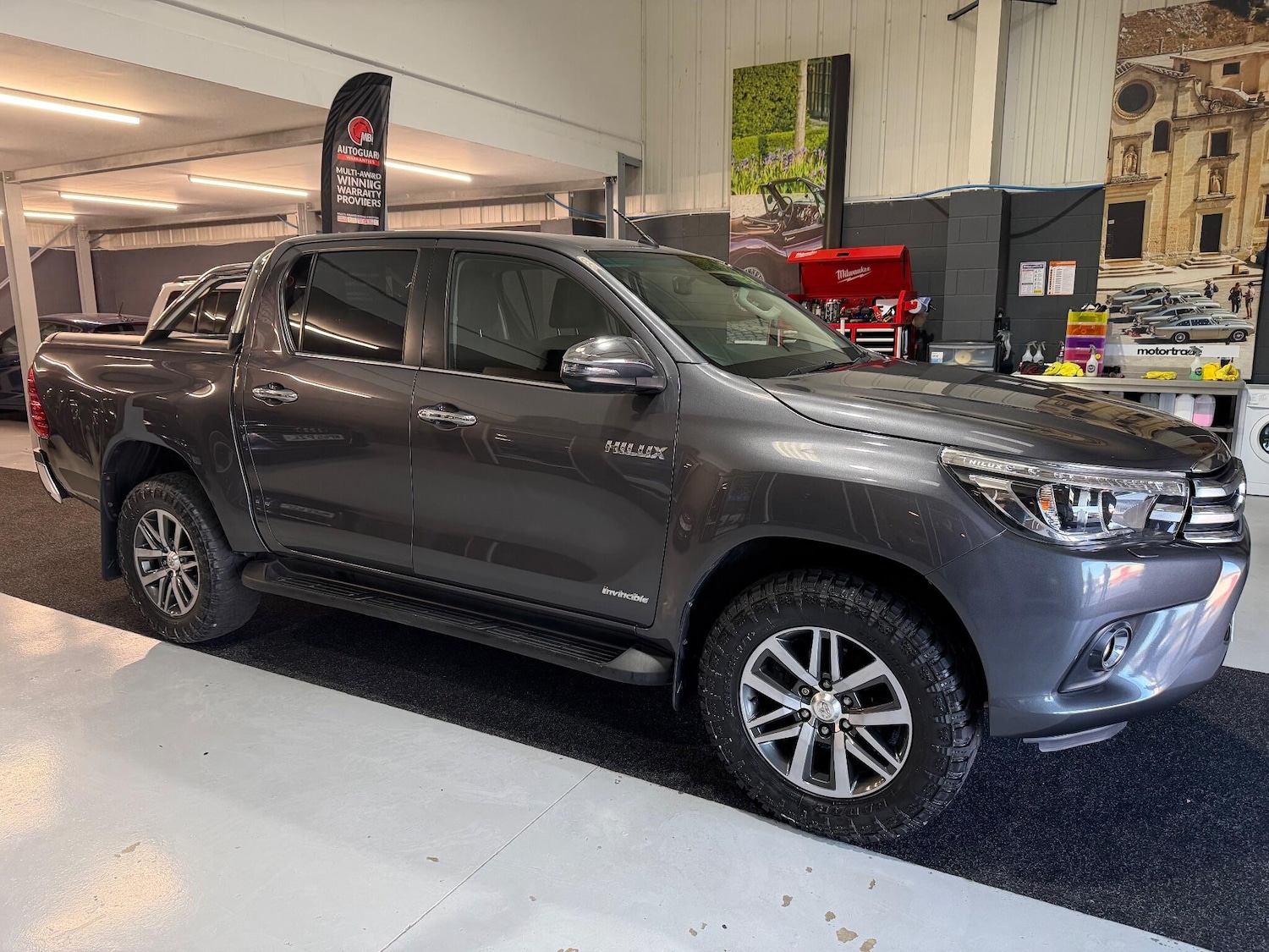 1 Previous Owner, Toyota Hilux 2.4 D4D Invincible Auto Finished in Magnetic Grey with Cloth Interior. Great Service History with low owners. Recently MOTD and Serviced, so all ready to drive away. Great specification which includes 18 Alloy Wheels, Radar Renegade RT+ Tyres, Bluetooth, Cruise control, Reversing Camera, Navigation, Lane Assist, Pre Heat etc. 3 Months AutoGuard Warranty Included.Extended Warranties Available Via Our Warranty Partner AutoGuard, 12/24/36 Months Available For Peace Of Mind.If you think that this might be the one for you, then don't hesitate to give us a call for more information.