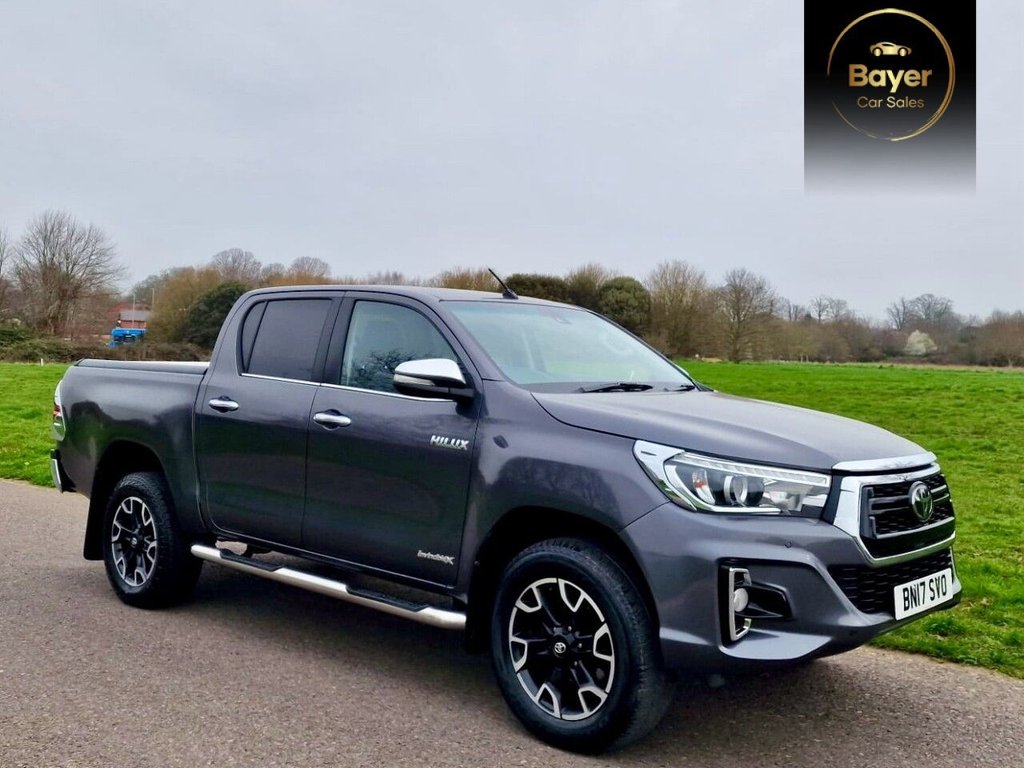 FarehamThis 2017 Toyota Hilux Invincible X is a robust and capable vehicle, ready for any challenge. Powered by a 2.4 litre diesel engine and featuring a four wheel drive drivetrain, it meets Euro 6 emission standards. This Invincible X model comes equipped with LED headlights that automatically turn on, ensuring optimal visibility. Inside, youll find automatic air conditioning for a comfortable cabin environment, and the convenience of push button start with a smart entry system. Bluetooth connectivity allows for seamless integration of your devices. The Invincible X trim level signifies a higher standard, offering a superior experience compared to other similar vehicles. The inclusion of LED headlights, automatic climate control, and keyless entry demonstrates a focus on both advanced technology and driver comfort. These features, combined with the dependable Toyota Hilux platform and its four wheel drive capability, make this a well rounded and practical choice for those seeking a reliable and well appointed vehicle. A little bit about us and how we work. We are a family business who have been supplying main dealerships for over 20 years. We have a very good supply of used cars that are in the main purchased directly from large PLC companies or main dealerships. We operate on a high turnover and small margin making our vehicles the best priced in the current market. With this in mind we don?t discount as we simply don?t have big margins to do so but more the fact we prefer to be completely transparent and believe everyone deserves to be offered the same great prices. We operate on an appointment basis so we can ensure the vehicle is ready. Please give us a call and pop in for a coffee..12V Socket x2, 18in Alloy Wheels Black Machined Face 6 Spoke, 220V Plug Socket, 4.2in MultiInformation Display Screen, 4WD Switch on Drivers Side, 6040 Split Tip Up Rear Bench, Anti Lock Braking System ABS with Electronic BrakeForce Distribution EBD, AntiJam Protection on Power Windows, Automatic Air Conditioning, Automatic Headlight Levelling, Aux Input, BA Brake Assist, Black Fabric Front Door Armrests, Bluetooth Connectivity, BodyColoured Front Bumper, Bumpers Rear Chrome Plated, Centre Room Light, Child Safety Locks on Rear Doors, Chrome Bumper Trim, Chrome Door Belt Moulding, Chrome Handbrake Button, Chrome Headlight Surround and Rear Light Surrounds, Chrome Insert on Centre and Side Air Vents, Chrome Insert on Gear Shift, Chrome Interior Door Handles, Chrome Side Bars with Integrated Steps, Chrome Surrounds on Front Fog Lights, Chrome Tailgate Release handle, Chrome Upper Front Grille, Chrome Window Frame, Clean Air Filter, Cruise Control, DAB Digital Radio, DAC Downhill Assist Control, Daytime Running Lights LED, Decuma Grey, Differential Locking Rear, Door Courtesy Light, Door Handles Chrome, Door Mirrors Chrome, Driver and Front Passenger Personal Lights, Driver and Front Passenger Whiplash Injury Lessening WIL Seats, Eco Driving Indicator, Eco Driving Switch on Centre Console, Electric Windows Front and Rear, Emergency BrakeLight Signal EBS Hazard Type, Fabric Rear Armrest, Follow Me Home Headlights, Front Console Box, Front Cool Box, Front Fog Lights, Front Seat Belt Reminder, Full Spare Alloy Wheel, Gear Shift Surround Chrome, Gear Shift Surround on Centre Console Silver, HAC Hill Start Assist Control, Headlight Cleaners, Headlights Automatic On, Headlights LED, Highway Terrain Tyres, Hilux Tailgate Decal, Illuminated Entry System, Immobiliser, Indicator Integrated in Door Mirrors, Inner Load Hooks on Cargo Deck, ISOFIX Fixing Points, Key Reminder Warning, Leather Black Professional, Leather Gear Shift, Leatherlike Armrest on Front Console Box, Lockable Tailgate, Locking Glove Box, Manual DayNight RearView Mirror, Manual Tilt and Telescopic Adjustable Steering Wheel, Manually HeightAdjustable Driver Seat, Mirror on Passenger Sun Visor, Mud Flaps Front and Rear, Padded Armrest on Front Console Box, Parking Pack, Pollen Air Filter, Power Adjustable Heated Foldable Door Mirrors, Power Door Locks, Power Mode Switch on Centre Console, Power Passenger Window Lock, Power Steering, PushButt, Price Plus VAT