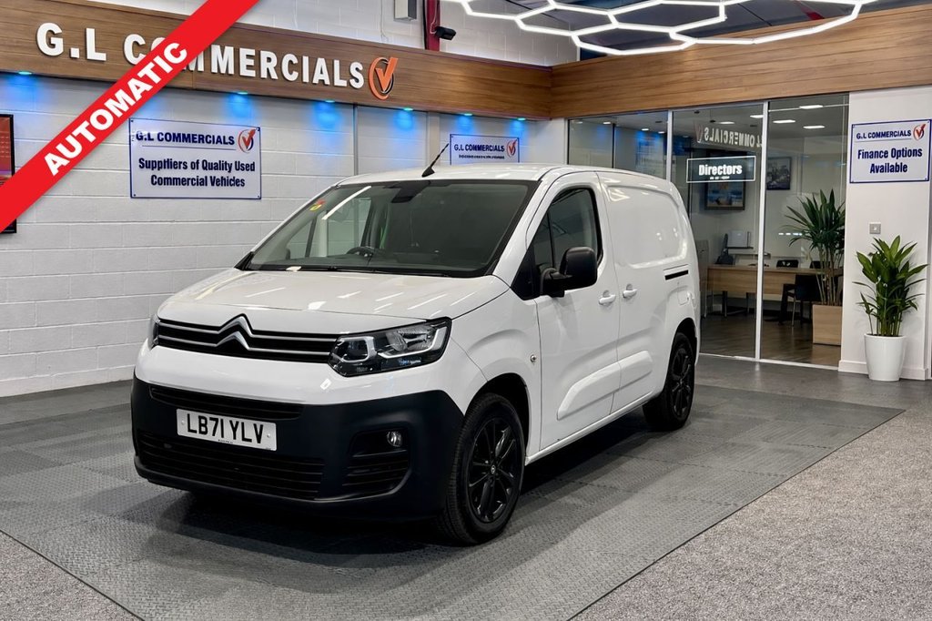 0 Previous Owners, LB71 YLV 31/12/2021 AUTOMATIC L2 LWB GL Commercials is proud to offer this Citroën Berlingo XL L2 LWB in a rare automatic transmission, driver specification. It has had only one careful owner from new and comes with a full service history. Features include: •Alloy wheels •Rearview camera •Navigation system •Touchscreen display •Parking sensors •Air conditioning •Internal racking •Twin side loading doors This vehicle is HPI clear and ideal for personal or business use. All EX FLEET vehicles are serviced & have at least 10m MOT before collection or delivery. NATIONWIDE DELIVERY AVAILABLE TO YOUR DOOR. All EX FLEET vehicles come with warranty & FSH. POOR CREDIT FINANCE AVAILABLE. .Automatic, 1 Owner FSH, Xl L2 Long wheel base, Alloy wheels, 3 Seater , 12V Socket in Dashboard, 16in Alloy Wheels Starlit Black, 6 FloorMounted Load Securing Rings, 6 Way Adjustable Drivers Seat includes Lumbar Adjustment and Under Seat Storage, 8in Colour Touchscreen with Citroen Connect Navigation and DAB Radio Bluetooth Handsfree USB Socket, Acoustic Laminated Windscreen with Sound Insulating Front Windows, Additional Acoustic Insulation Providing Benchmark Cabin Refinement, Air Conditioning, Airbags Driver, Alarm Parametric and Volumetric Thatcham Category 1 Approved Alarm with Tilt Sensor, Automatic Activation of Hazard Warning Lights on Major Deceleration, Automatic Electronic Parking Brake, Citroen Connect Box with Emergency and Assistance System, Comfort Drivers Seat, Cruise Control with Programmable Speed Limiter, Cup Holders for Driver and Passenger on Either Side of the Dashboard, Dashboard Mounted Central Locking Push Buttons and Auto Locking Above 7 MPH, Door Opening Warning Light and Audible LightsOn Warning, Driver and Passenger Seatbelt Unfastened Warning, Drivers Seat Height Adjustment Lumbar Rake and Reach Adjustment, ESC with Hill Start Assist ABS Braking including EBA and EBFD, EXTENSO Modular Folding Passenger Bench Seat with Pivoting Writing Table Storage Under Central Seat Load Through Hatch in Bulkhead and Load Protection Cover Compliant with ISO27956, Electric Power Assisted Steering with Reach and Rake Adjustable Steering Column, Electric Windows Front with One Touch Operation, Electrically Folding Adjustable Door Mirrors with Temperature Sensors, Free2Move Connect Fleet Telematics (6 Month Subscription From New), Front Door Pockets with 1.5L Bottle Holders, Front Fog Lights, Full Bulkhead, Hard Plastic Floor Protection in Cabin, Hard Plastic Floor Protection in Load Area, Height Adjustable Halogen Headlights, High Level Third Brake Light, Lockable Fuel Cap, Look Pack, MultiFunction OnBoard Trip Computer, Offside Sliding Side Loading Door, Overhead Storage Shelf, Parking Sensors Front and Rear, Remote Central Locking with Deadlocks, Rev Counter with Maintenance and Gear Efficiency GEI Indicators, Rolling Code Transponder Immobiliser, Side Rubbing Strips, Spare Wheel Full Size Steel, Surround Rear Vision, Top Box Storage Compartment, Twin Sliding Side Loading Doors, Tyre Pressure Monitor, Unglazed Asymmetric Rear Doors Opening to 180 Degrees, Visibility Pack, Visible Vehicle Identificati