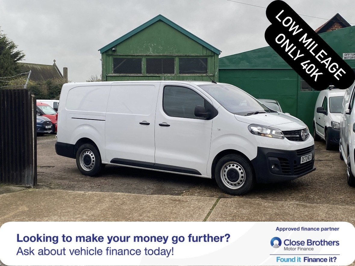 Ipswich0 Previous Owners, VAUXHALL VIVARO 1.5 Turbo D 2900 DYNAMIC White Manual Diesel 2022 Vauxhall Vivaro DYNAMIC LWB, 2022, ULEZ COMPLIANT, EURO 6 Finance Available, PX welcome Vauxhall Vivaro DYNAMIC L2 H1, 1.5L, EURO6 Finance Available. Subject to status, Written details on request. Get in touch to discuss the best finance option for you. Part Exchange welcome. 40k miles Lovely looking van and a pleasure to drive. Will be sold with 12 months MOT. 2 Factory remote Keys, Registered 2022 ONE OWNER FROM NEW WITH SERVICE HISTORY SPEC INCLUDES; TOUCHSCREEN, APPLE CARPLAY AIR CON, HILL START ASSIST CRUISE CONTROL, REAR PARKING SENSORS Remote central locking, electric mirrors, electric windows, Gear Change assist, 3 seats, Bluetooth connectivity, Multifunction steering wheel, Trip computer, 6 speed, ABS, Traction control. National delivery available. £12,995 + VAT Viewings by appointment only. Needs nothing, ready to work. We are FCA registered. All our vehicles are HPI checked., Price Plus VAT