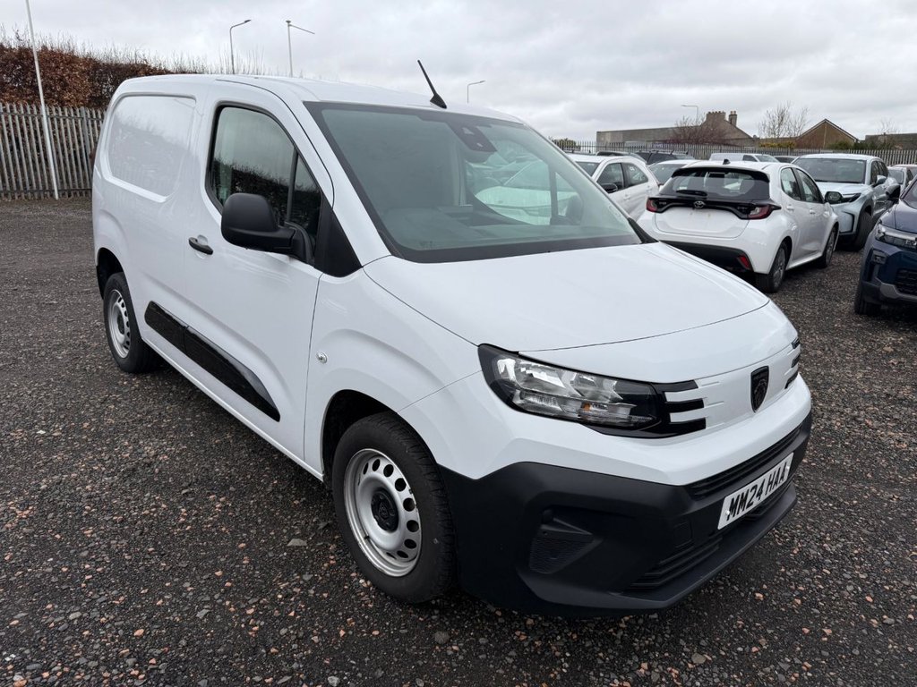 Cowdenbeath1 Previous Owner, Peugeot Partner 1.5 1000 professional , new shape , still under manufacturers warranty until August 2027 , air con , cruise control , wood lined , excellent condition both inside and out . Px welcome and excellent finance rates available ..12V Socket Dashboard, 16in Steel Wheels Grey with Half Hubcap, 4Way Passenger Seat ReachRake with Adjustable Headrest, 6way Drivers Seat ReachRakeHeight and Lumbar, Advanced Emergency Braking System, Airbag Row 1 Curtain, Airbag Row 1 Side Thorax, Automatic Activation of Hazard Warning Lights on Major Deceleration, Automatic OnOff Headlight Control, Black Door Mirrors, Black Front and Rear Bumpers, Cruise Control with Speed Limiter, Dashboard Mounted Central Locking Push Button and Auto Locking Above 7mph, Door Handles Black, Door Mirrors Electrically Adjustable and Heated, Driver Attention Alert, Drivers Airbag, Electric Front Windows with OneTouch Operation, Electric Power Steering with Reach and Rake Adjustable Steering Column, Electronic Stability Control and ABS with Hill Start Assist EBA and EBFD, Front Passenger Airbag, Full Bulkhead with Clothes Hook, Full Bulkhead with Loadthrough Hatch, Halogen Headlamps with Integrated Daytime Running Lamp, Hard Plastic Floor Protection in Cabin, High Beam Assist, Intelligent Speed Assistance, Lane Keeping Assist, Manual Air Conditioning with Air Recirculation Facility, Manual Parking Brake, Nearside Sliding Side Door, Overhead Storage Shelf in Cabin, Peugeot Connect with RCE, Primary and Spare Folding Keys, Rear Parking Sensors, Remote Control Central Deadlocking with Immobiliser, Seatbelts with Action, Short Antenna 200mm, Side Mouldings Black, Six Fixed Floormounted Load Restraint Lashing Eyes, Sliding Door Rail Cover Short Black Trim, Smartphone Station, Steering Wheel Sports, Steering Wheel Audio Control Buttons, Tyre Inflation Kit, Tyre Pressure Monitoring System, Unglazed Asymmetric Rear Doors Opening to 180 Degrees, Price Plus VAT