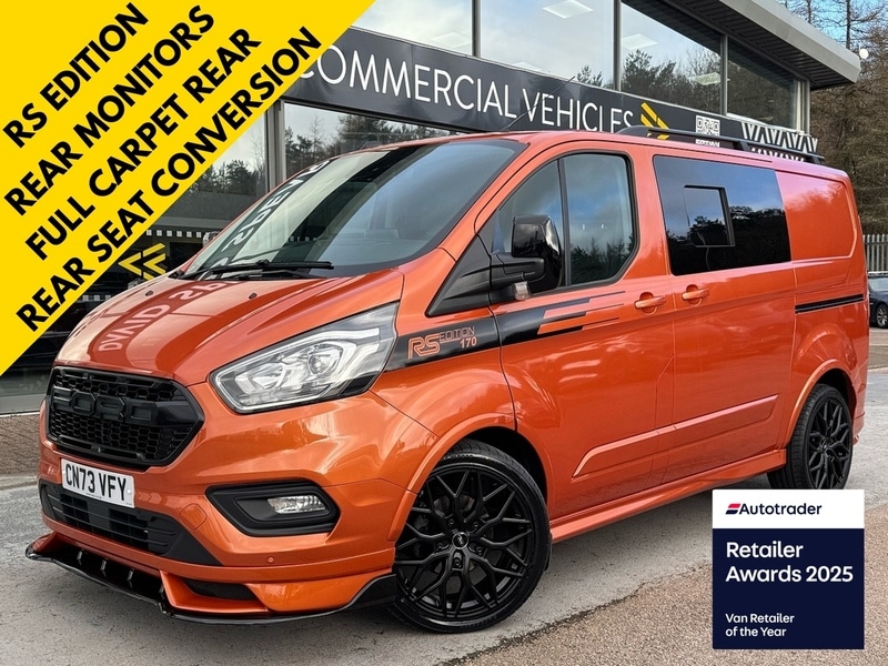 Tredegar1 Previous Owner, Ref CN73 VFY David Spear Commercial Vehicles presents this DSCV EXCLUSIVE FORD TRANSIT CUSTOM in ORANGE with 2 keys and 26k miles. This vehicle has been fitted with Fords 2.0 diesel engine with 130ps.DSC used commercial vehicles go through a vehicle preparation process of which we carry out a 97point check by our approved technicians & full vehicle cosmetic examination / preparation to ensure the highest standards of quality for our customers also MOT / Service if required.David Spear Commercials & QBE warranties partnership offers our customers the most comprehensive warranty protection in the UK with a claim limit up to the value of the purchase price, giving you total peace of mind for your purchase regardless of location in UK.Nationwide Coverage with over 400 AA Approved garage repair networks & the warranty also incorporates AA break down assist from Home, Business and Road recovery for the duration of the warranty cover.Items like wet belts, timing belts, turbo chargers, dual mass fly wheel, EGR Valves, DPF, ECU engine management, Suspension, Clutch & Braking system, Steering, Fuel & Heating systems, Engine & Gearbox, Fuel system & Multimedia (including sat nav), Doors & Windows. Our web address davidspear.com or email salesdavidspear.com*Features*ELECTRIC FOLDING MIRRORS, AUTOMATIC HEADLIGHTS, HEATED FRONT SCREEN, HEATED FRONT SEATS, CRUISE CONTROL, STOP/START, FRONT AND REAR PARKING SENSORS, REAR VIEW MIRROR, DAB RADIO, URGRADED STEERING WHEEL, TAILGATE, FULL REAR CARPET, REAR SEAT CONVERSION, LED CEILING LIGHTS & 2 REAR MONITORS.20" ALLOYS, FRONT SPLITTER, REAR SPOILER, ROOF RAILS, UPGRADED GRILL & DECALS.Automatic Gearbox6 Leather Seats.Independent specialist commercial dealership Family run since 1987Lowrate finance options available.Nationwide deliveryPart exchange welcomeTELEPHONE 01495 309098..2 Keys,20" Alloy Wheels,6 Seats,Air Conditioning,Auto Headlamps,Bluetooth,Bulkhead Removed,Crew Cab,Cruise Control,Custom Decals,DAB Radio,Electric Folding Mirrors,Electric windows,Euro 6,FREE 3Month Warranty,Front & Rear Bumper Lower Spoiler,Front and Rear Parking Sensors,Full Range of Accessories Available,Heated front screen,Heated Leather Seats,Kombi,L1 H1,LED Day Time Running Lights,LED Spotlights,Mulitfunction Steering Wheel,Nationwide delivery service available,Rear Carpeted,Rear view camera,Roof Rails,Stop Start,Tailgate, Price Plus VAT