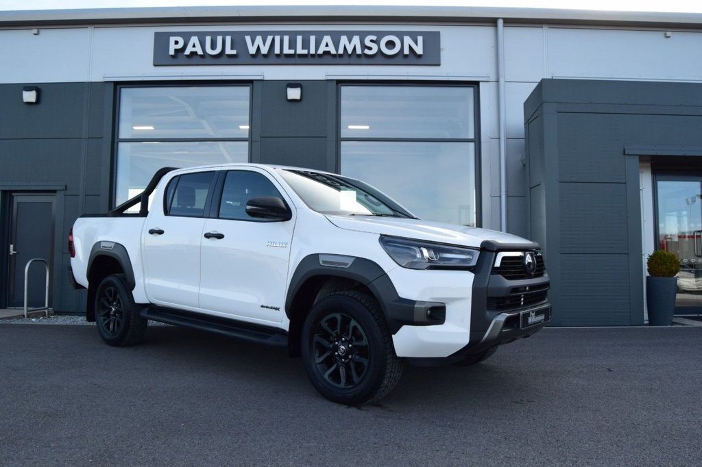 Elgin1 Previous Owner, .18in Alloy Wheels, Front and Rear Parking Sensors, LED Daytime Running Lights, Manual Roll Cover Black with Sports Ba, Manual Roll Cover Black with Sports Bar Black, Pure White, 18in Alloy Wheels, 6040 Split Tip Up Rear Bench, Active Traction Control ATC, Ambient Door Lighting, Anti Lock Braking System ABS with Electronic BrakeForce Distribution EBD, Auto Headlights, Automatic Headlight Levelling, BA Brake Assist, Bluetooth Connectivity, Bumpers Body Coloured, Cooler in Upper Glovebox, DAC Downhill Assist Control, Dark Grey Rear Bumper, Digital Audio Broadcast DAB, DualZone Automatic Air Conditioning, Dynamic Guide Lines On Rear View Camera Display, Electrochromatic RearView Mirror, Emergency BrakeLight Signal EBS Hazard Type, Floor Mats Textile, Follow Me Home Headlights, Front 12V Power Outlet x2, Front Mudguards, Front Passenger Airbag Detector, Front Passenger Airbag OnOff Switch, Front Seat Belt Reminder, Front and Rear Parking Sensors, Front and Rear Power Windows, Full Spare Alloy Wheel, HAC Hill Start Assist Control, Headlight CutOff Reminder, Headlights LED, Height Adjustable Driver Seat, Highway Terrain Tyres, Immobiliser, Inner Load Hooks on Cargo Deck, Intelligent Adaptive Cruise Control, LED Daytime Running Lights, LED Front Fog Lights, LED Rear Lights, Lane Departure Alert, Leather Steering Wheel and Gear Shift, Lockable Tailgate, Panoramic View Monitor, Power Steering, PreCollision System with Pedestrian Detection, Privacy Glass Rear, Rear Fog Light, Rear Mudguards, Rear Passenger Footwell Heating, Rear View Camera, Retractable Power Adjustable and Heated Door Mirrors, Road Sign Assist, Seats Drivers Power Adjustment, Seats Heated Front, Seats Heated Outer Rear, Shade Band on Windshield, Side Steps Black, Smart Entry and Smart Start System, Smartphone Integration including Apple Car Play and Android Auto, Supplemental Restraint System SRS Airbags 7 Airbags, TPMS Tyre Pressure Monitoring System, Toyota Safety Sense 2, Toyota Touch 2 Multimedia, Toyota Touch 2 with Go Navigation, Trailer Sway Control TSC, USB Connector, Underbody Protection Cover, VSC Vehicle Stability Control, Windscreen Wiper DeIcer, Price Plus VAT