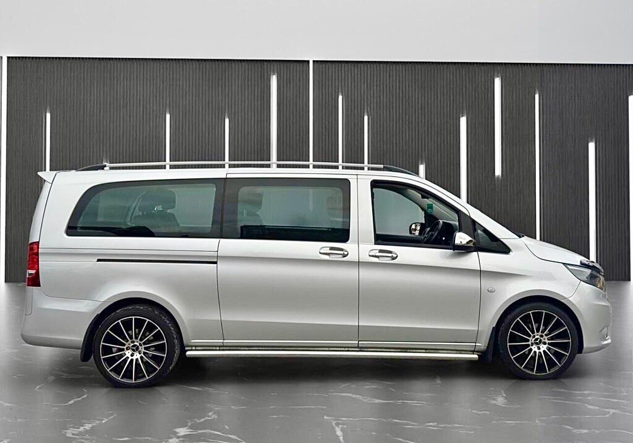 Bolton0 Previous Owners, Nice example of a 9 seater Vito only 37,000 miles from new, just serviced, MOT July 2026, cruise control, 9 seats, metallic silver paintwork, alloy wheels, chrome side steps, roof rails, rear spoiler, front spoiler, mudflaps, exterior chrome pack, very rare extra long wheel base model, fantastic condition, starts and drives brilliantEURO 6 and ULEZ compliantNO VATNO VATNO VAT