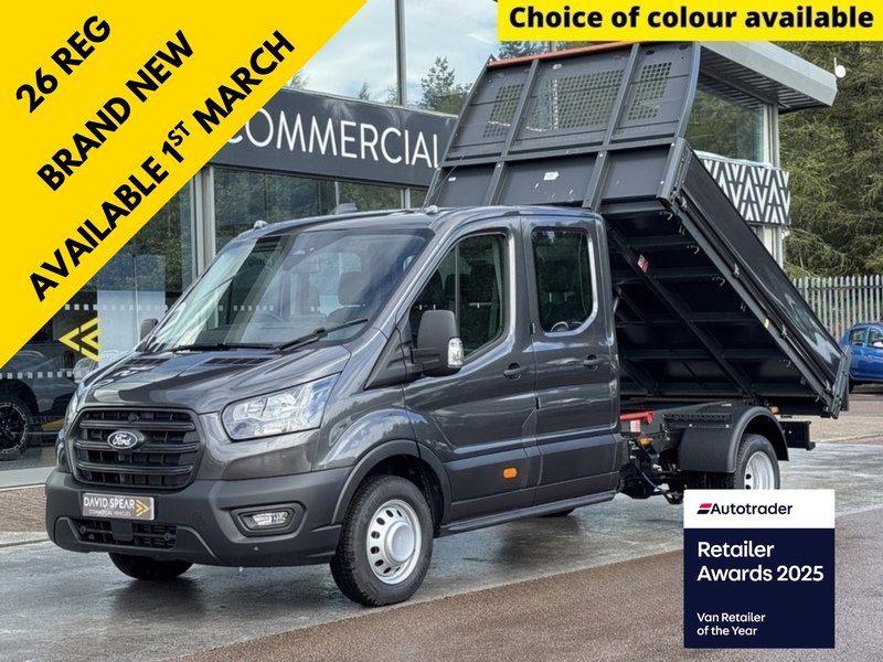 TredegarRef. N4712 David Spear Commercial Vehicles presents this brand new Magnetic Grey FORD TRANSIT 7 SEAT DOUBLE CAB TIPPER with delivery miles only. The vehicle has been fitted with Ford's efficient 2.0ltr 165ps engine. DSC used commercial vehicles go through a vehicle preparation process of which we carry out a 97point check by our approved technicians & full vehicle cosmetic examination / preparation to ensure the highest standards of quality for our customers also MOT / Service if required.David Spear Commercials & QBE warranties partnership offers our customers the most comprehensive warranty protection in the UK with a claim limit up to the value of the purchase price, giving you total peace of mind for your purchase regardless of location in UK.Nationwide Coverage with over 400 AA Approved garage repair networks & the warranty also incorporates AA break down assist from Home, Business and Road recovery for the duration of the warranty cover.Items like wet belts, timing belts, turbo chargers, dual mass fly wheel, EGR Valves, DPF, ECU engine management, Suspension, Clutch & Braking system, Steering, Fuel & Heating systems, Engine & Gearbox, Fuel system & Multimedia (including sat nav), Doors & Windows. Our web address davidspear.com or email salesdavidspear.com*FEATURES*AIR CONDITIONING, SAT NAV CAR PLAY, REVERSE CAMERA, 12" TOUCHSCREEN, BLUETOOTH, CRUISE CONTROL, ELECTRIC WINDOWS AND DAB RADIO.TWIN REAR WHEELS.7 Seats6speed gearboxIndependent specialist commercial dealership Family run since 1987Finance options availableNationwide deliveryPart exchange welcomeTELEPHONE 01495 309098., Price Plus VAT
