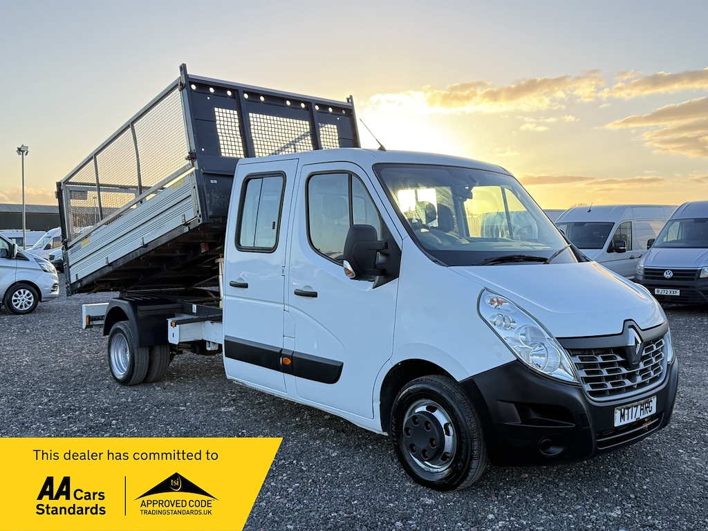 BABCARY2 Previous Owners, NO VAT TO PAY 2017 Renault Master Double cab tipper Twin wheel LWB 2.3 DCI 3.5T 130 Business Euro 6. £14275 NO VAT *Finance available at very good rates. *12 Months free AA breakdown cover. *3 Months warranty,6 ,12 or 24 months extended package available *MOT MARCH 2027 *74k genuine miles Here we have lovely Renault Master tipper ready to go in perfect condition 1 company owner from new ULEZ Free. Very well maintained and comes with: Reversing Camera Rear seats Removed Factory Alloy tipping bed With high cages. Electric Tow bar , Incresed towing Capacity. Electric windows Radio cd player /Aux/Bluetooth Remote central locking V5 present ,hpi clear Very good tyres all around It is very clean in and out ,mechanically everything works as it should .No rust at all ,ready for work. For more used commercial vans or tippers please get in touch 0117 427 0703 or check our website www/albvans.co.uk Viewers ,test drivers or any inspections w. 12V Power Socket Front,16in Steel Wheels,2x Cupholders on Centre Console,ABS Anti Lock Brakes,Airbags Driver,Alarm PreWiring,Aluminium Cab Protecting Grid with Ladder Long Object Rack,Aluminium Side and Rear Panels 400mm High,Armrest Driver,B Pillar Wiring Connection Point,Battery Interface,Bluetooth,Bulkhead Full Steel with Glazing,CAN Interface Unit,DAB Radio,Deadlocking,Door Mirrors 16W Integrated Side Repeater Lights,Door Mirrors Electrically Adjustable Manual Folding and Heated,EBD Electronic Brake Distribution,ESC Electronic Stability Control,Electric Windows Front,Electronic Engine Immobiliser,Fuel Computer Multifunctional,Glovebox,Grip XTend,HSA Hill Start Assist,Overhead Parcel Shelf,Passenger Bench Seat,Power Assisted Steering,Radio CD MP3 and USB Compatibility,Remote Central Locking,Seats 2nd Row of 4 Passenger Seats,Seats Drivers Height Adjustment,Seats Drivers Lumbar Adjustment,Spare Wheel,Steering Wheel Height Adjustable,Trailer Swing Assist,USB Connectivity
