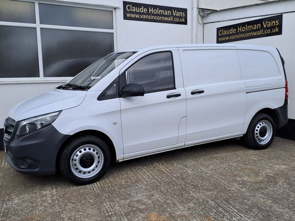 0 Previous Owners, 2017(17) Mercedes Benz Vito 1.6 109 CDi 90bhp Euro 5 van in white,power steering,ABS braking,remote central locking,electric windows & mirrors,cruise control,radio/media system,reverse camera,3 front seats,full bulkhead,twin side load doors,internal racking,shelving and a safe,61,000 miles with full service history from one owner. We have been trading for over 45 years. All vans are fully prepared to Claudes exacting standards by our fully trained, onsite Service & MOT depts. All are thoroughly valeted, serviced and MOTd, with the added peace of mind of our own warranty. .16in Steel Wheels, 5.8in TFT Colour Display, ABS AntiLock Braking System, Adaptive Brake Lamps, Adaptive ESP Electronic Stability Programme, Airbag Driver, Airbag Front Passenger, ASR AntiSlip Regulation, ATTENTION Assist, Audio 15, Auxin Socket, BAS Brake Assist, Bluetooth Connectivity Audio Streaming, Bluetooth Interface for HandsFree Telephone, Bulkhead Full Steel, Cleaning Fluid Level Warning Light, Crosswind Assist, Cup Holder Front x2, Daytime Running Lights, Doors Twin Rear Doors Open to 180 Degrees, Doors Twin Sliding Side Solid, Drivers Seat HeightAdjustable, Dual Front Passenger Seat, EBD Electronic Brakeforce Distribution, Electric Parking Brake, Electric Windows Front, Headlights Halogen, Headrests Adjustable for Twin CoDriver, High Level Third Brake Light, Hill Start Assist, Illuminated Glove Compartment, Immobiliser, iPod Interface, Live Traffic Information, Load Securing Rings in Luggage Compartment, Lockable Glove Compartment, Power Assisted Steering, RDS Radio, Remote Central Locking, Rescue Assist Sticker with QR Code, SD Memory Card Slot, Seat Belt PreTensioners Front, Seat Belt Reminder Front, Service Indicator ASSYST, SPEEDTRONIC Cruise Control, Speedtronic Variable Speed Limiter, Steering Wheel 3Spoke Multifunction, Stowage Compartments Beneath the Windscreen x3, Suspension Basic, Telephone Keypad, Trip Computer, Tyre Pressure Monitoring System, USB Port, Warning Lights for Oil Level Coolant Level Brake Fluid Brake Pads Bulb Failure and Door Closure, WoodComposite Floor, Price Plus VAT
