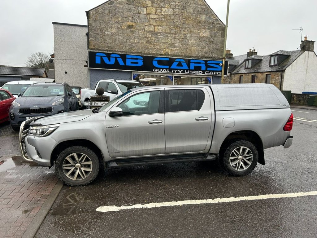 Milnathort2 Previous Owners, "JUST IN" A superb driving Hilux auto finished in silver metallic with matching canopy..12V Socket, 18in Alloy Wheels, 220V Plug Socket, 4.2in MultiInformation Display Screen, 4WD Auto Disconnecting Differential ADD, ABS Anti Lock Braking System, Airbags Curtain, Airbags Driver, Airbags Driver Knee, Airbags Front Passenger, Airbags Front Side, Automatic Air Conditioning, Automatic Headlight Levelling, BA Brake Assist, Carpet Floor Covering, Centre Console with Storage and Armrest Lid, Chrome Door Handles and Mirrors, Chrome Side Bars with Integrated Steps, Clock, ColourKeyed Front Bumper, ColourKeyed Overfenders, Cruise Control, DAC Downhill Assist Control, Differential Locking Rear, Dusk Sensor, EBD Electronic Brakeforce Distribution, Electric Front Windows, Electrically Adjustable Heated Door Mirrors with Integrated Turn Indicators, Follow Me Home Headlights, Front Cool Box, Front Fog Lights, Front Seatbelts with Pretensioners and Load Limiters, Fuel Heater, Full Spare Alloy Wheel, HAC Hill Start Assist Control, Headlight Cleaners, Headlight Warning Buzzer, Headlights LED, Heated Rear Window, Immobiliser, ISOFIX Fixing Points, Keyless Entry System, Leather Steering Wheel with Audio Controls and Leather Gear Shift Trim, Load Sensing Proportioning System, Lockable Tailgate, Locking Glove Box, Mud Flaps Front and Rear, Outer Rear Seatbelts with Pretensioners and Load Limiters, Perimeter Alarm, Power Retractable Door Mirrors, Power Steering, Push Button Start, Radiator Grille Chrome, Rear Privacy Glass, Remote Central Locking, Scuff Plates, Single Tip Up Rear Bench, Tachometer, Tilt and Reach Adjustable Steering Column, Toyota Safety Sense, Toyota Touch 2, Traction Control Active, Trailer Sway Control TSC, USB and Aux In, Variable Rate Windscreen Wiper, VSC Vehicle Stability Control