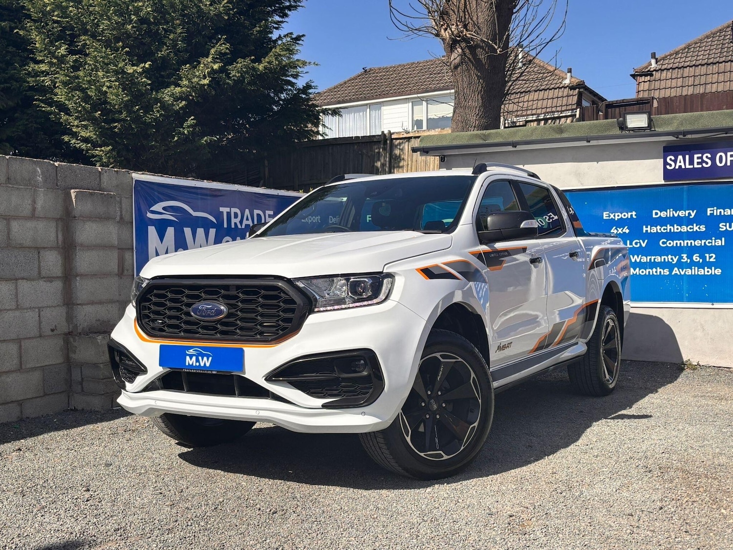 DudleyNO VAT,MSRT MODEL,FULL MSRT BODY STYLING KIT,MSRT BESPOKE STEERING WHEEL,20 INCH ALLOY WHEELS,ELEC SIDE STEPS,ELEC REAR SHUTTER,SAT NAV,PARKING CAMERA,FRONT & REAR PARKING SENSORS,MSRT SPORTS LEATHER & SUEDE SEATS,,TO MANY EXTRAS TO LIST,CAT N,ANY INSPECTION WELCOME,FINANCE OPTIONS AVAILABLE REPRESENTATIVE EXAMPLE 9.7 APR, WE ARE A CREDIT BROKER NOT A LENDER FOR FURTHER INFORMATION PLEASE NAVIGATE TO OUR WEBSITE www. mwtradecarsltd.co.uk AND CLICK ON THE FINANCE TAB. OR CONTACT US ON 01384861237.With an MOT valid until April 2027 and a full service history, this 2023 Ford Ranger MSRT is a well maintained example. This four wheel drive, 2.0 litre diesel automatic boasts a powerful 210 bhp engine and has covered a very low 14,000 miles. It is equipped with front and rear parking sensors, a rear view camera, and LED headlights for enhanced visibility and convenience. Inside, you will find heated front seats, perfect for those colder journeys.The MSRT derivative signifies a special edition, offering a unique blend of rugged capability and sporty styling. The Euro 6 compliant engine ensures efficient performance, and the four wheel drive system provides confidence in various driving conditions. The vehicle's low mileage for its age, combined with its comprehensive service history and long MOT, indicates it has been carefully looked after and is ready for its next adventure.